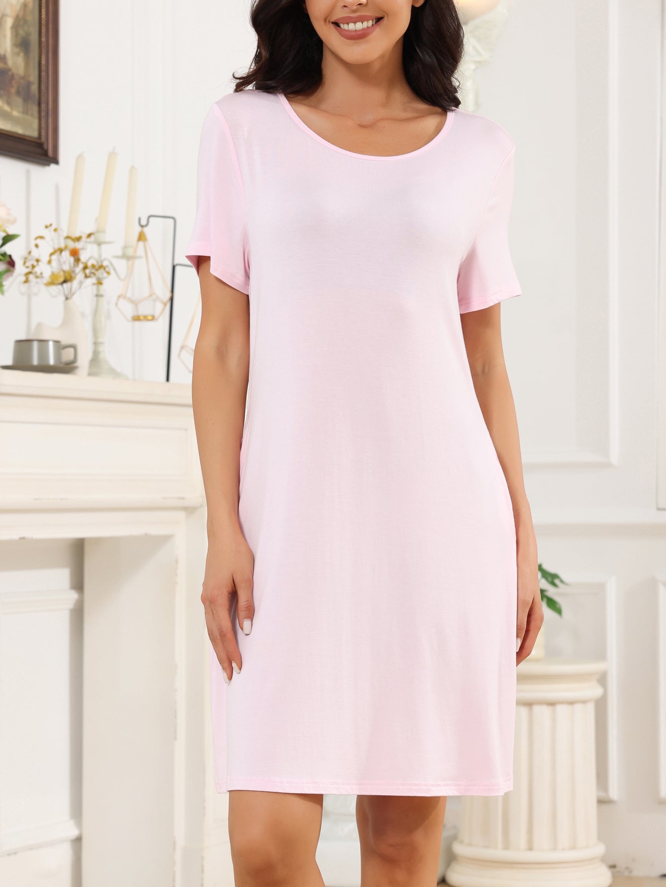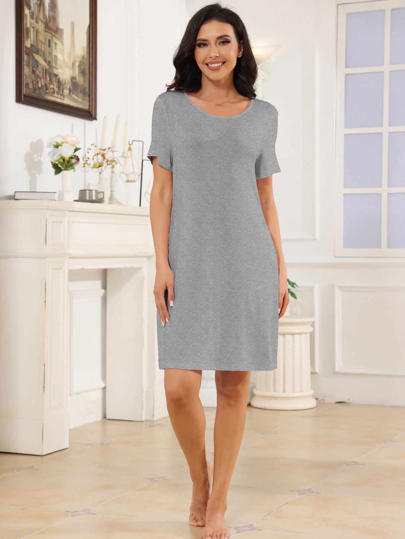 Opdag vores tidløse damesovekjole lavet af høj kvalitet jersey-materiale, som forener komfort og stil. Denne sovekjole er kendetegnet ved et enkelt, men elegant design, der er ideelt til afslappede aftener derhjemme såvel som til hyggelige nætter.