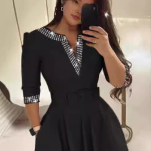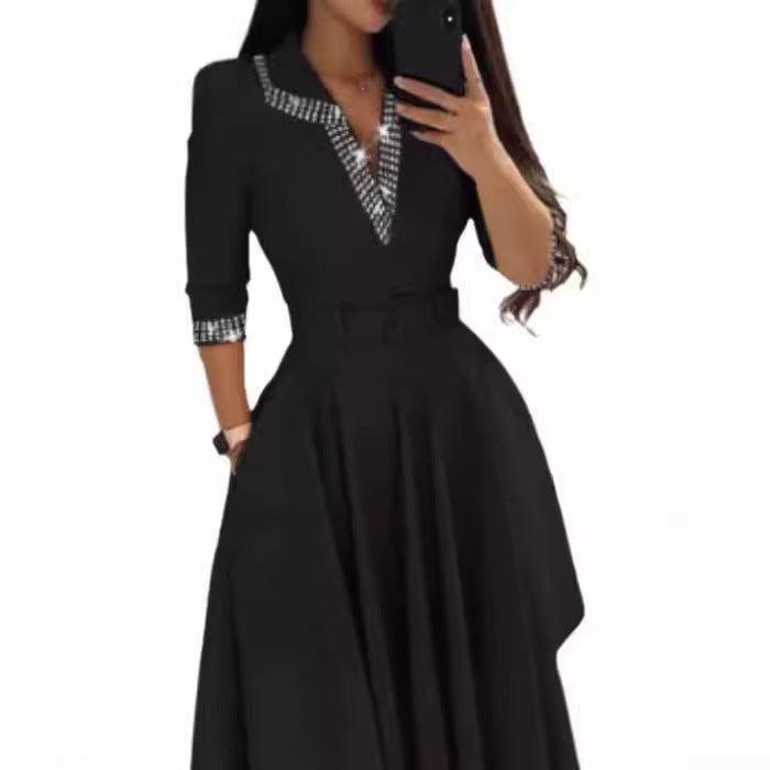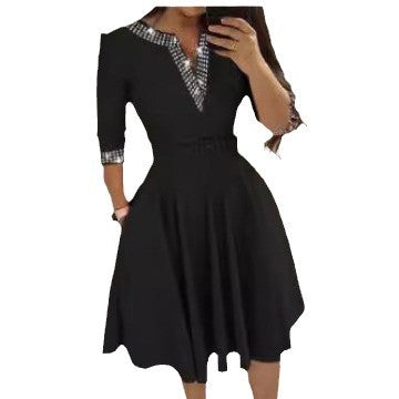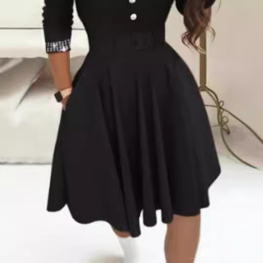 Opdag vores stilfulde A-Linien kjole med en unik ternet krave, der forener både elegance og komfort. Denne kjole er det ideelle valg til særlige anledninger eller en enkel hverdag.