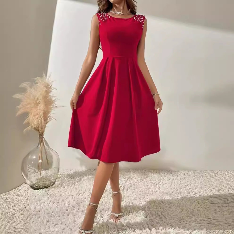 Oplev vores stilfulde damers A-linje kjole, der forener elegance og komfort. Med glitrende detaljer på skuldrene tilbyder denne kjole ikke kun et strejf af glamour, men også en smigrende pasform til enhver figur.