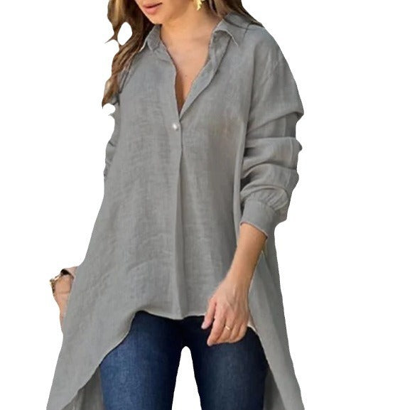 Dame afslappede bluser-lang skjorte i kvalitets hørblanding Stilla