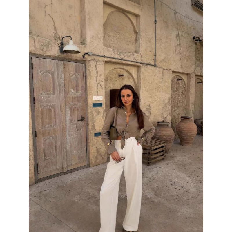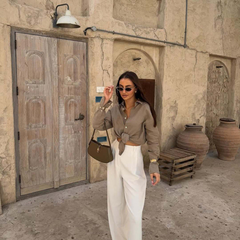 Opdag den perfekte kombination af stil og komfort med vores damesløs bluse med knude-detalje og elegante manchetter fra Stilla. Denne stilfulde bluse er ideel til forskellige anledninger, hvad enten det er til kontoret eller en afslappet aften med venner.