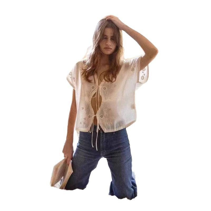 Oplev den charmerende dames afslappede bluse med snøreløsning fra Stilla, som er perfekt til årets varme dage. Denne bluse forener stilfuld elegance med et afslappet look og er et must-have for enhver modebevidst kvinde.