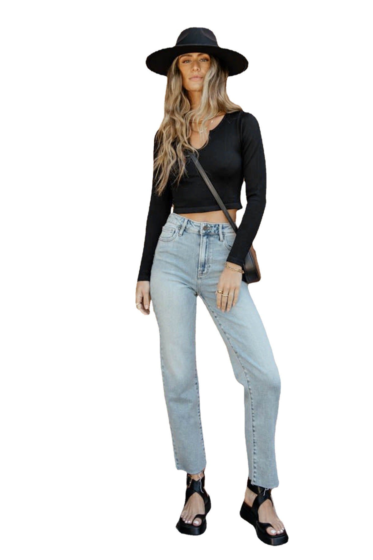 Opdag vores stilfulde dames Crop-Top, der er perfekt til sommerdage! Toppen har en dyb V-udskæring og en fin ribstruktur, der kombinerer både komfort og elegance.