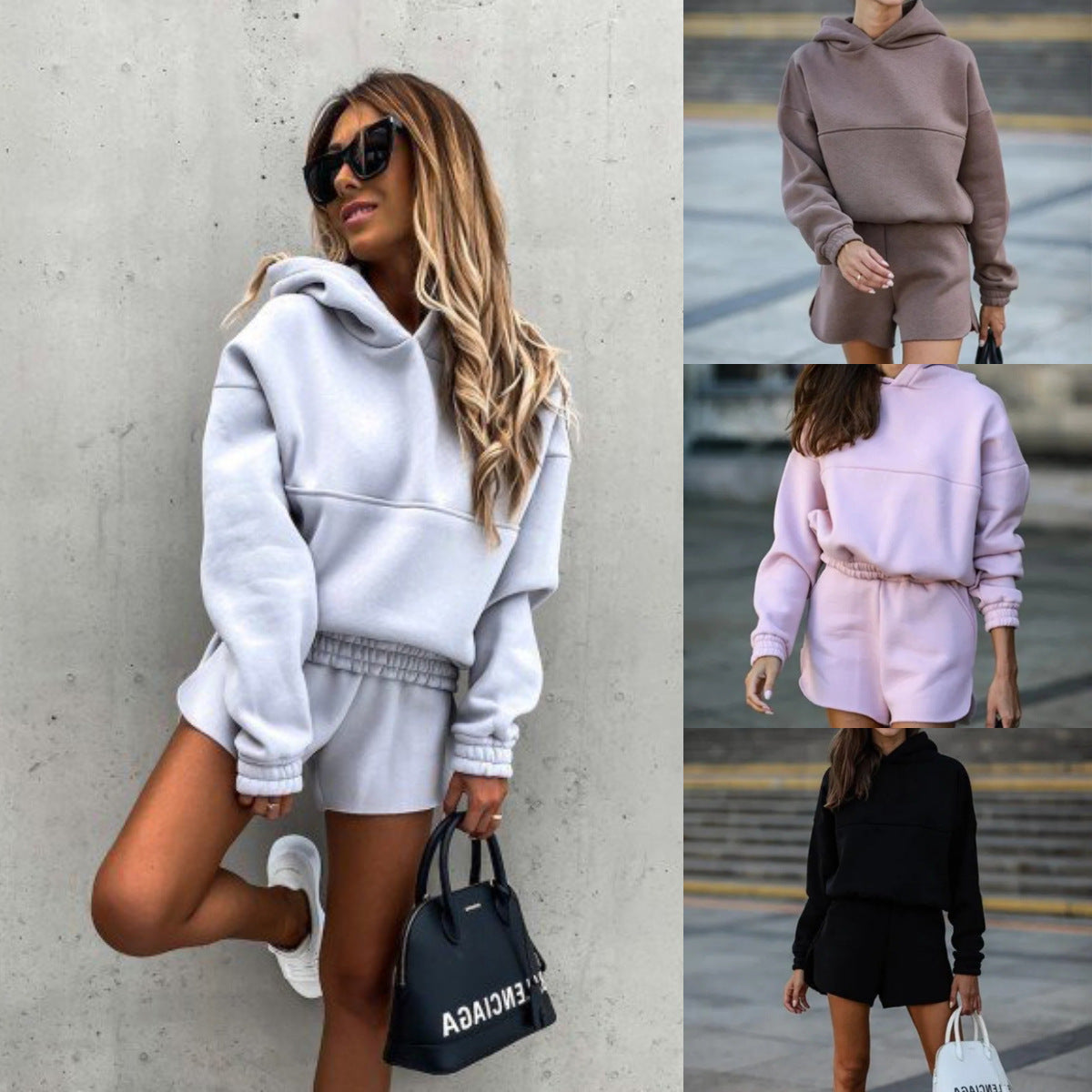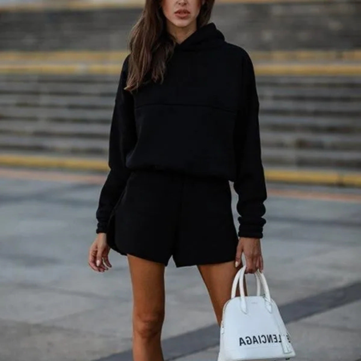 Oplev det ideelle afslappede fritidssæt fra Stilla, der kombinerer stil og komfort. Sættet omfatter en blød hoodie med en løs pasform og matchende shorts, perfekt til dage med afslapning og sportsaktiviteter.