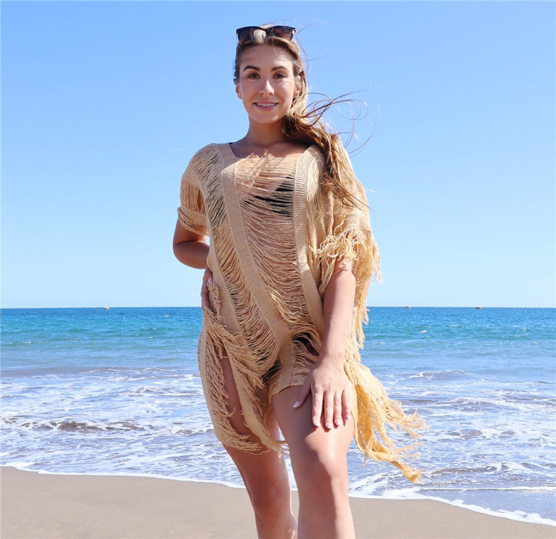 Opdag vores elegante dames hæklede strandoverdel med frynse detaljer fra Stilla. Dette tøjstykke er perfekt til sommer og imponerer med sin lette, luftige struktur. Strandoverdelen tilbyder ikke kun stil, men også komfort, uanset om du er på stranden, i haven eller slapper af ved poolen.