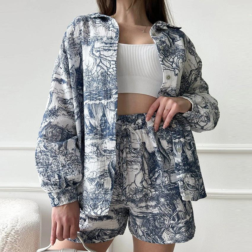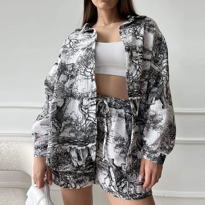 Opdag en perfekt kombination af elegance og komfort med vores dames afslappede kortærmede bluse- og shorts-sæt fra Stilla. Ideelt til varme dage, overbeviser dette sæt ikke kun med sit tiltalende design, men også med vidunderlige materialer og en god pasform.