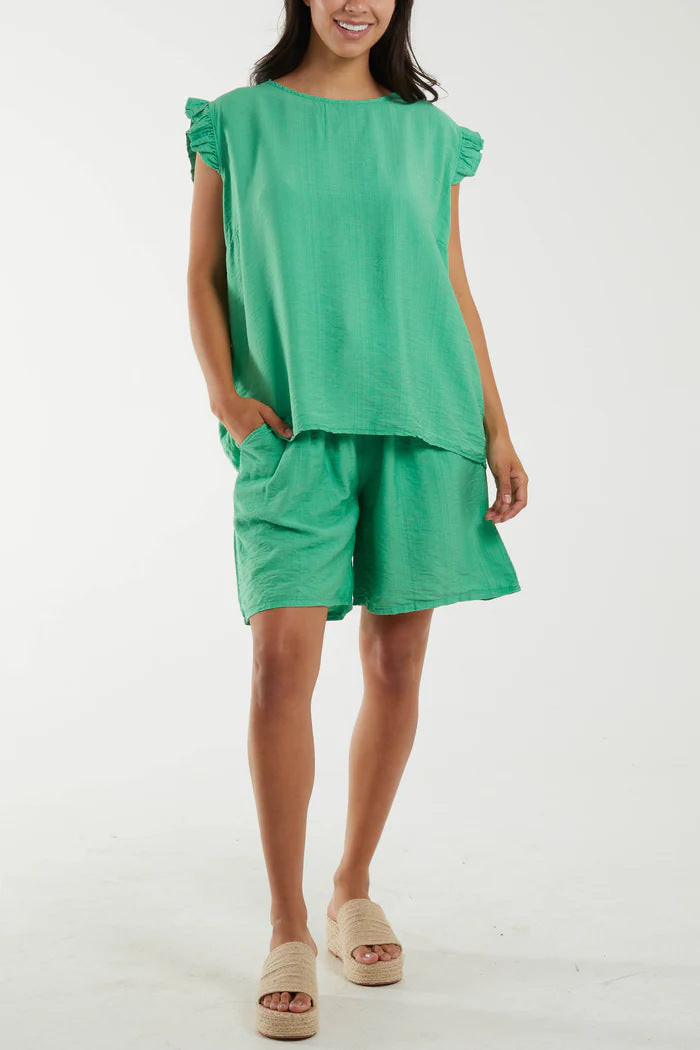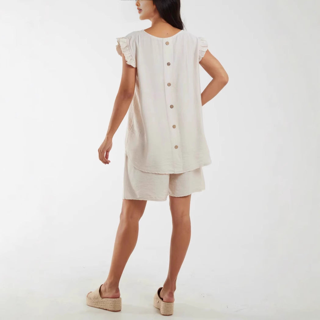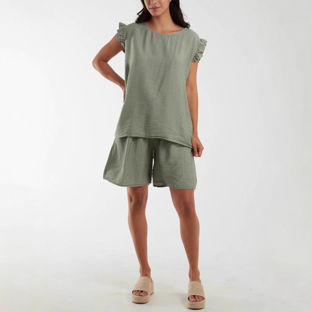 Opdag det perfekte fritidssæt med vores afslappede kortærmede sæt fra Stilla. Dette sæt består af en luftig top og komfortable shorts, ideelt til varme sommerdage eller afslappede fritidsaktiviteter.
