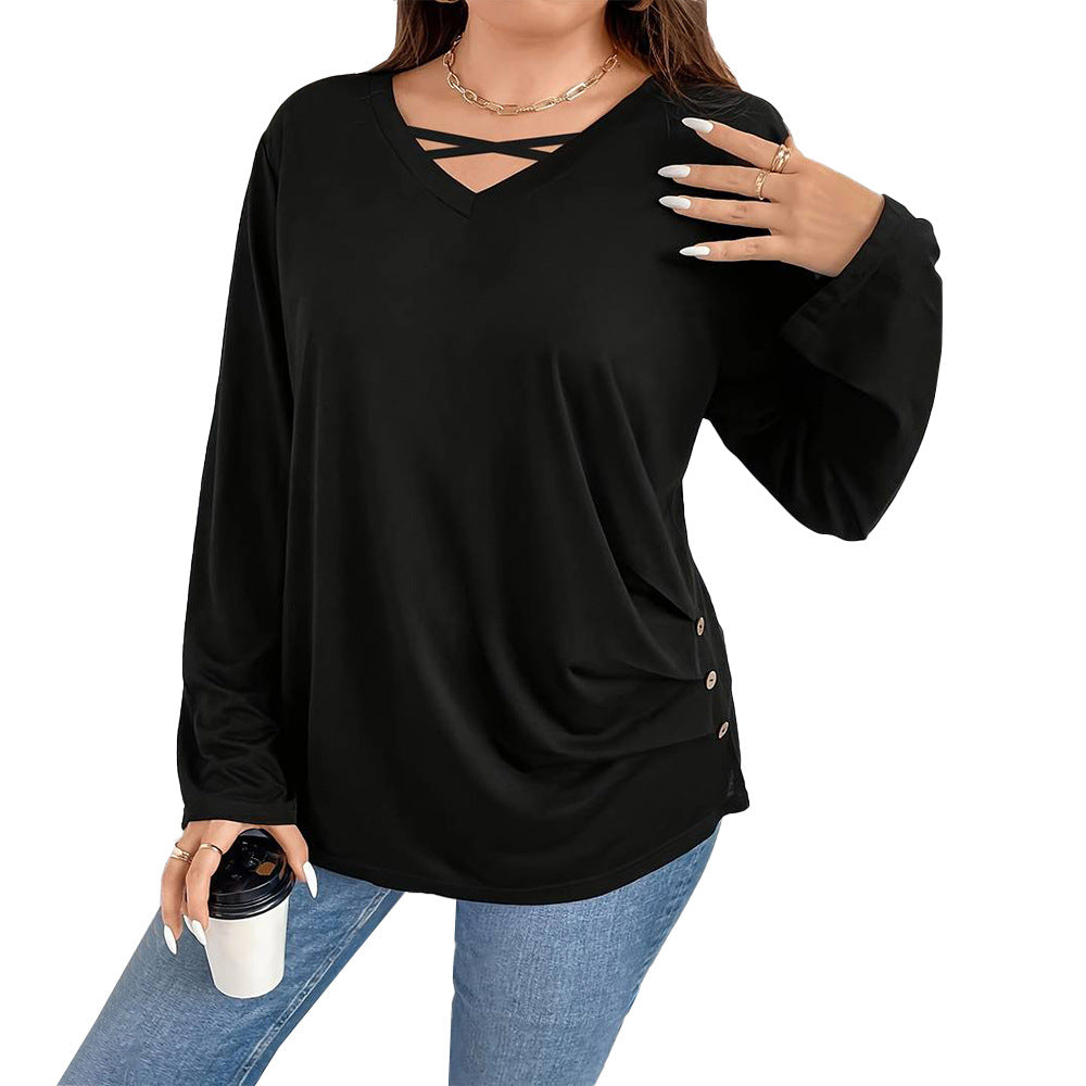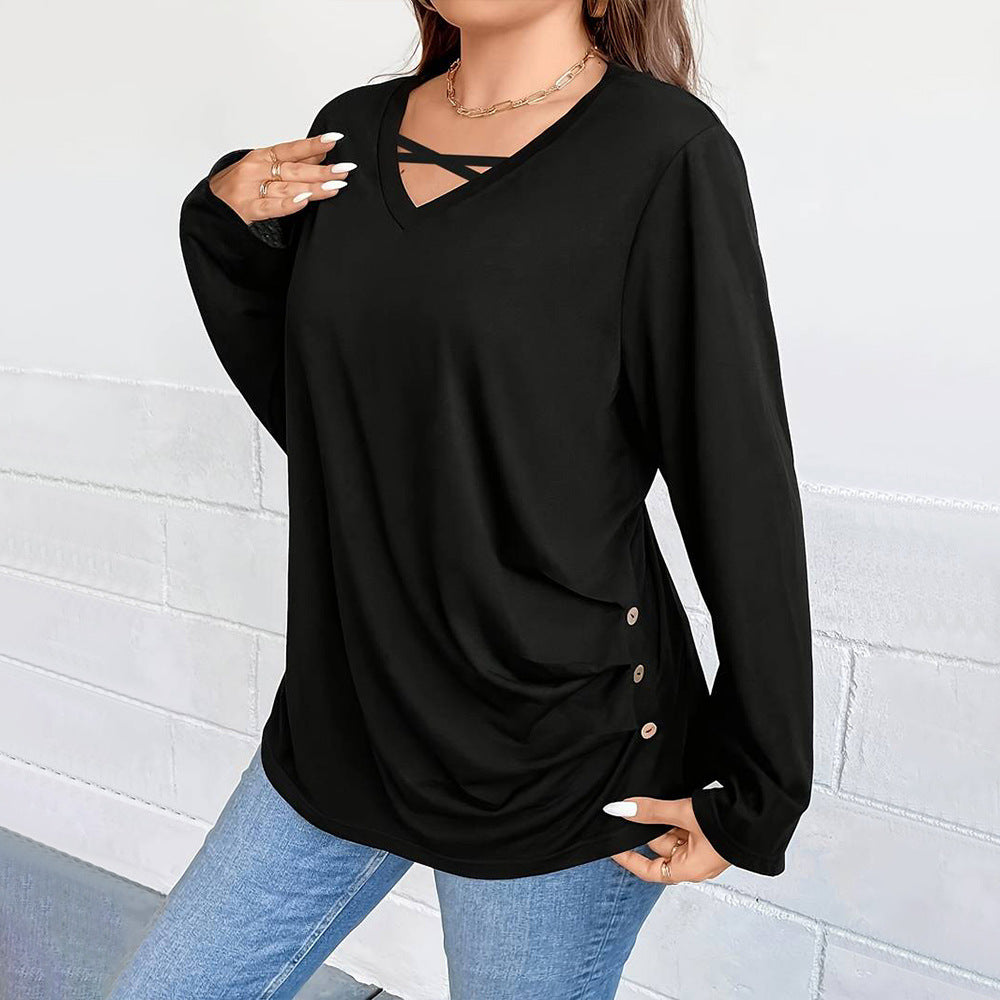 Oplev vores dames afslappede langærmede skjorte, der forener den højeste komfort med moderne stil. Denne skjorte er ideel til hverdagen og imponerer med sine unikke, stilfulde cut-outs i V-halsen, der tilfører et strejf af elegance.