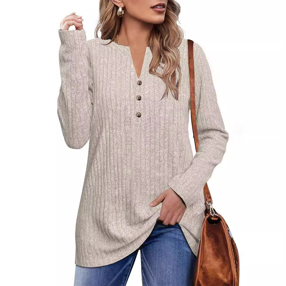 Opdag vores dames afslappede langærmede sweatshirt med struktureret design og knapdetaljer fra Stilla. Denne fashionable sweatshirt forener komfort og stil og er perfekt til enhver lejlighed.