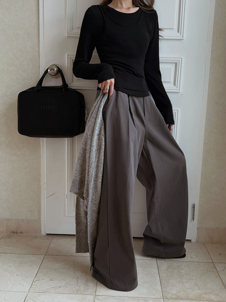 Opdag det perfekte fritidstøj med vores afslappede langærmede trøje med dekorativt omslagdetail. Dette overdel kombinerer stil og komfort for et moderne look, der er ideelt til forskellige anledninger.