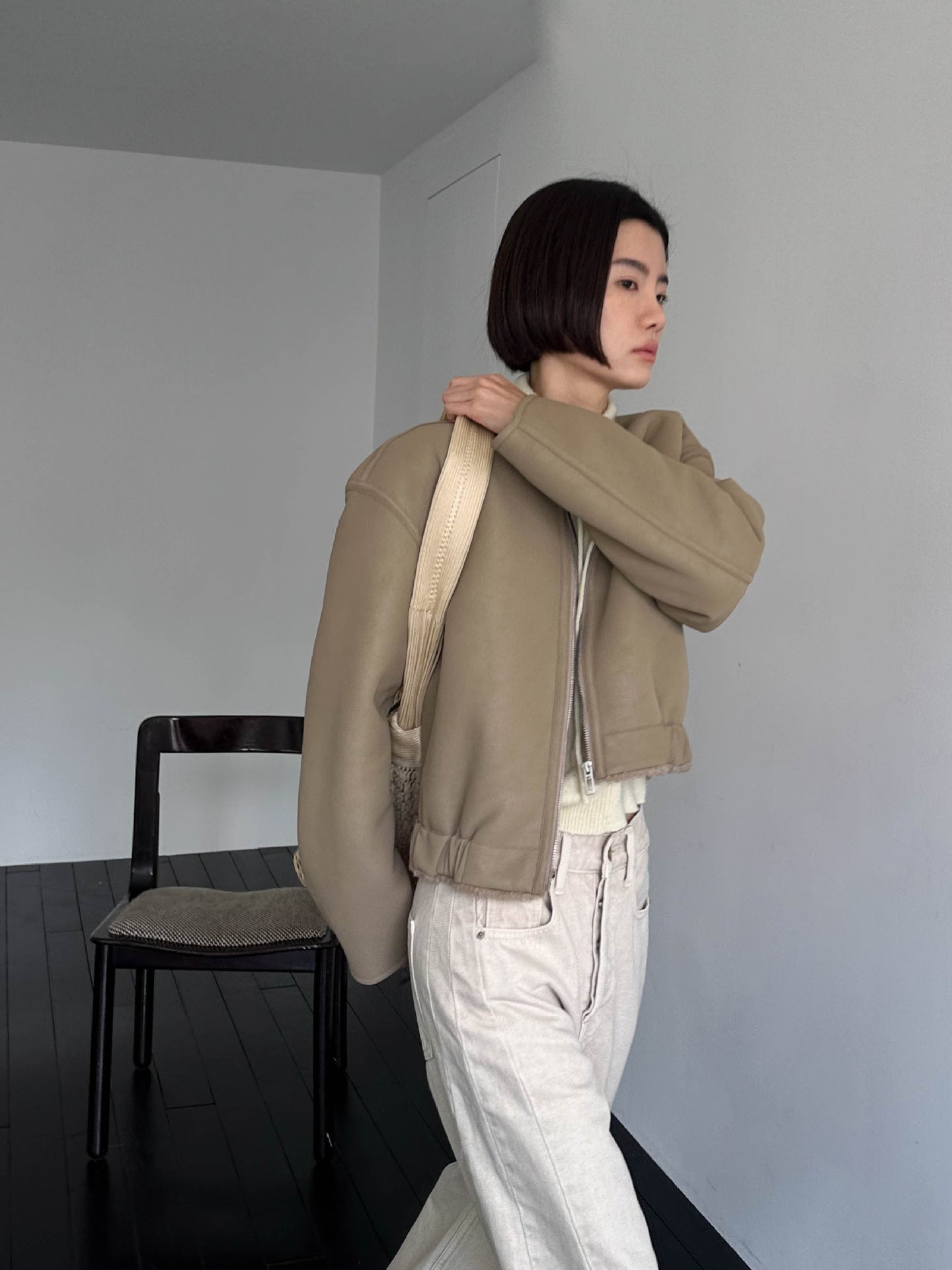 Opdag den tidløse elegance af vores dames afslappede læderjakke med kontrasterende detaljer. Denne jakke forener stil og komfort og er den perfekte tilføjelse til enhver garderobe.