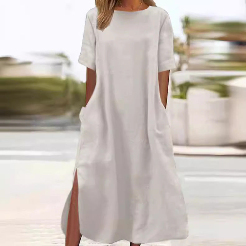 Uanset om du er på stranden, på bytur eller til havefest, vil denne linnedkjole blive din nye favorit. Kombiner den med sandaler eller sneakers for et afslappet look, der altid forbliver stilfuldt!