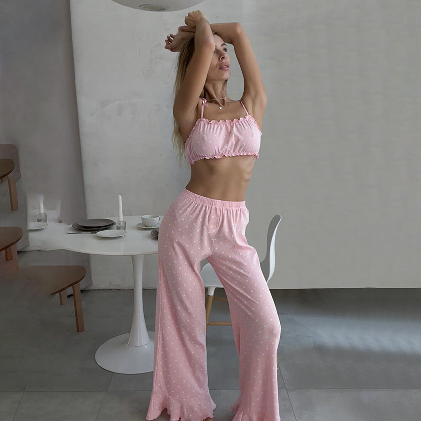 Opdag vores dames afslappede lounge-sæt med flæsedetaljer og brede ben fra Stilla, der kombinerer perfekt komfort og stil. Ideelt til afslappende dage derhjemme eller som stilfuldt nattøj, tilbyder dette sæt den ultimative følelse af velvære.