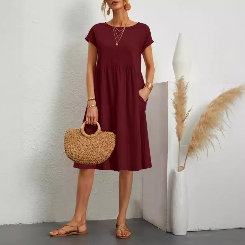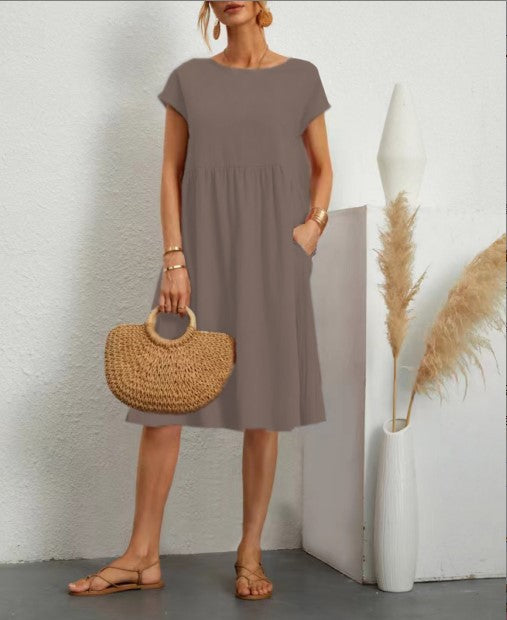 Giv din garderobe et afslappet, men stilfuldt touch med vores midi-kjole. Ideel at kombinere med sandaler eller sneakers for det perfekte fritidslook.