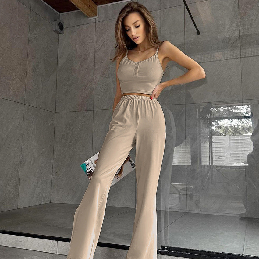 Opdag det perfekte pyjamasæt til afslappede aftener og hyggelige nætter. Dette simple og stilfulde pyjamasæt forener komfort med moderne design og er ideelt til enhver kvinde, der værdsætter kvalitet og elegance.