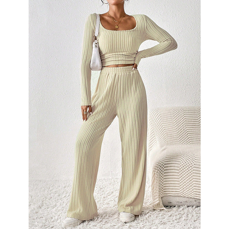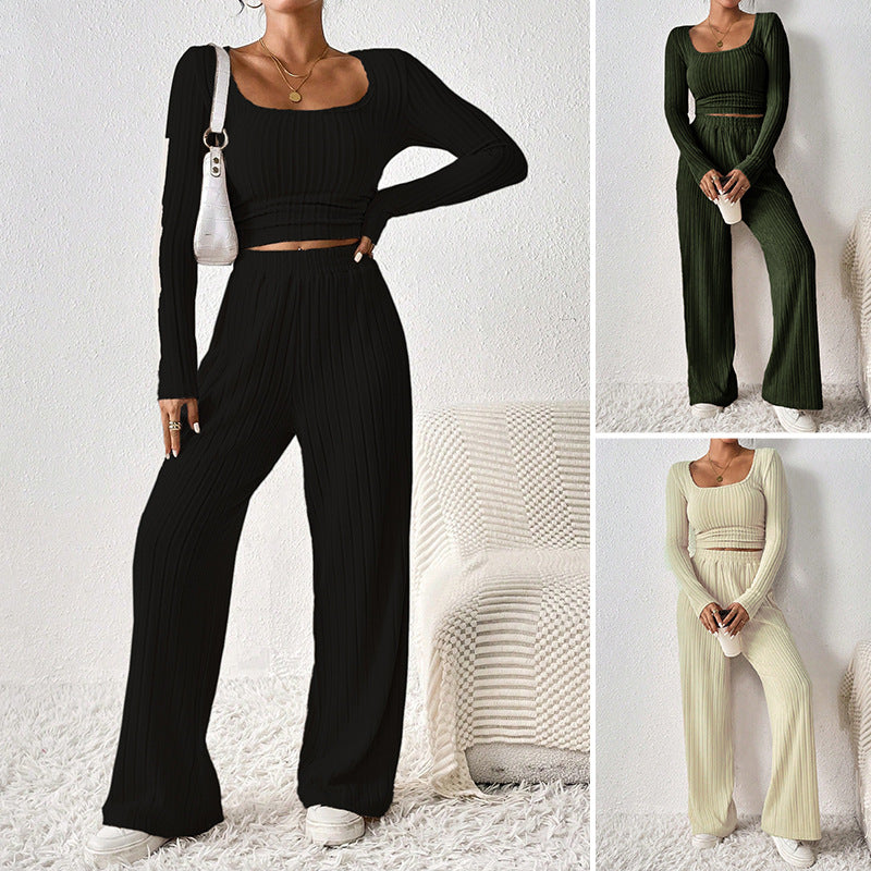 Opdag det perfekte outfit til enhver anledning med vores dames afslappede og elegante strik-to-dels sæt. Dette sæt kombinerer stil og komfort og er ideelt til fritid eller afslappede aftener.