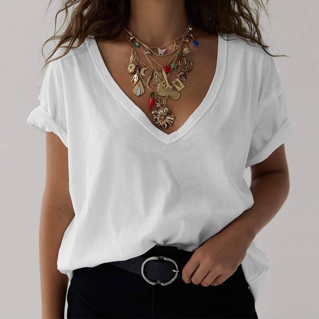 Oplev vores dames afslappede oversized T-shirt, der med en dyb V-udskæring og unikke blondeakcenter giver et elegant look. Fremstillet af højkvalitets, åndbart bomuld, tilbyder dette skjorte ikke blot stil, men også maksimal komfort.