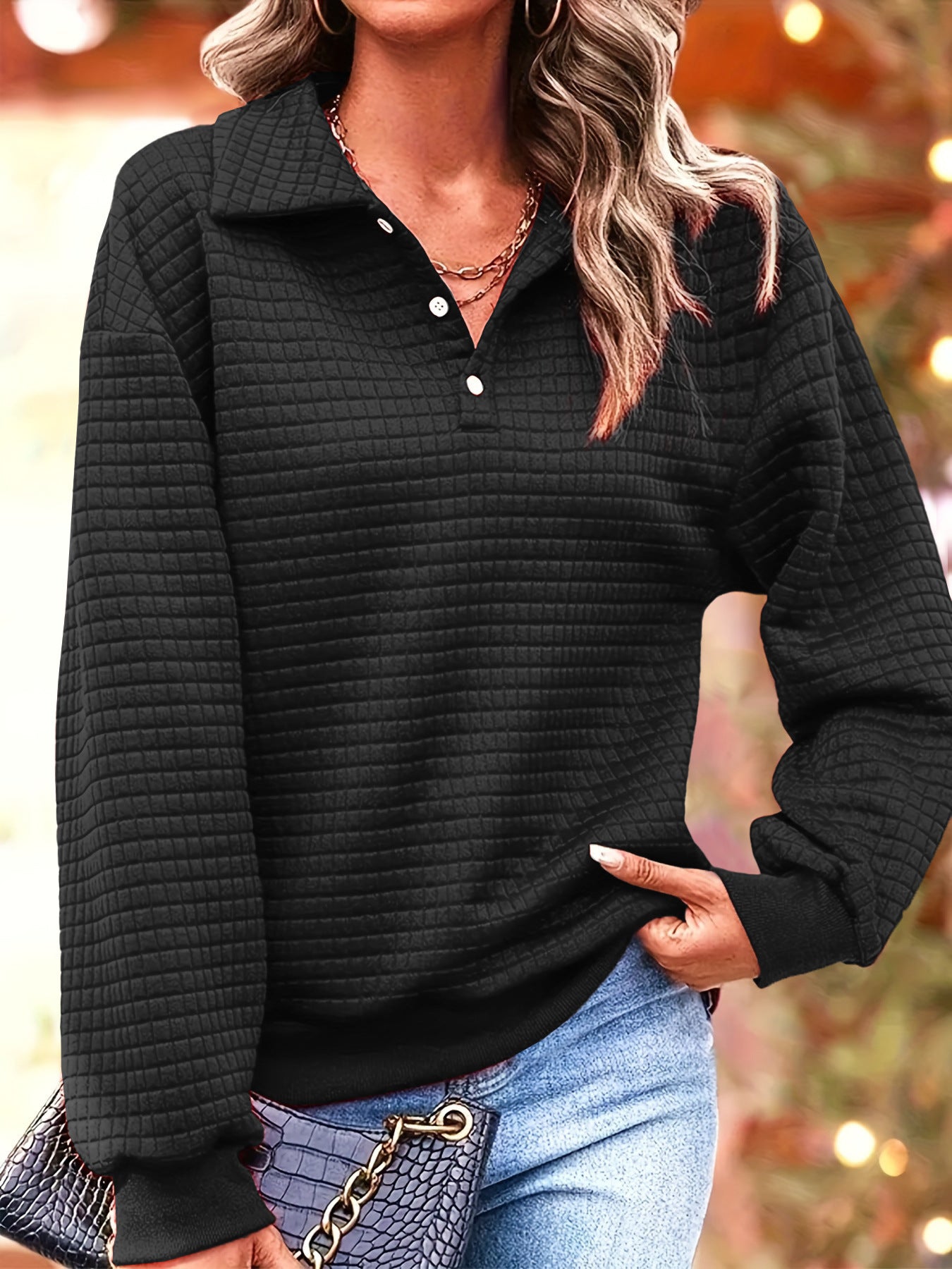 Opdag vores afslappede, quiltede sweater med knaplukning fra Stilla. Denne sweater forener stil og komfort til enhver lejlighed!