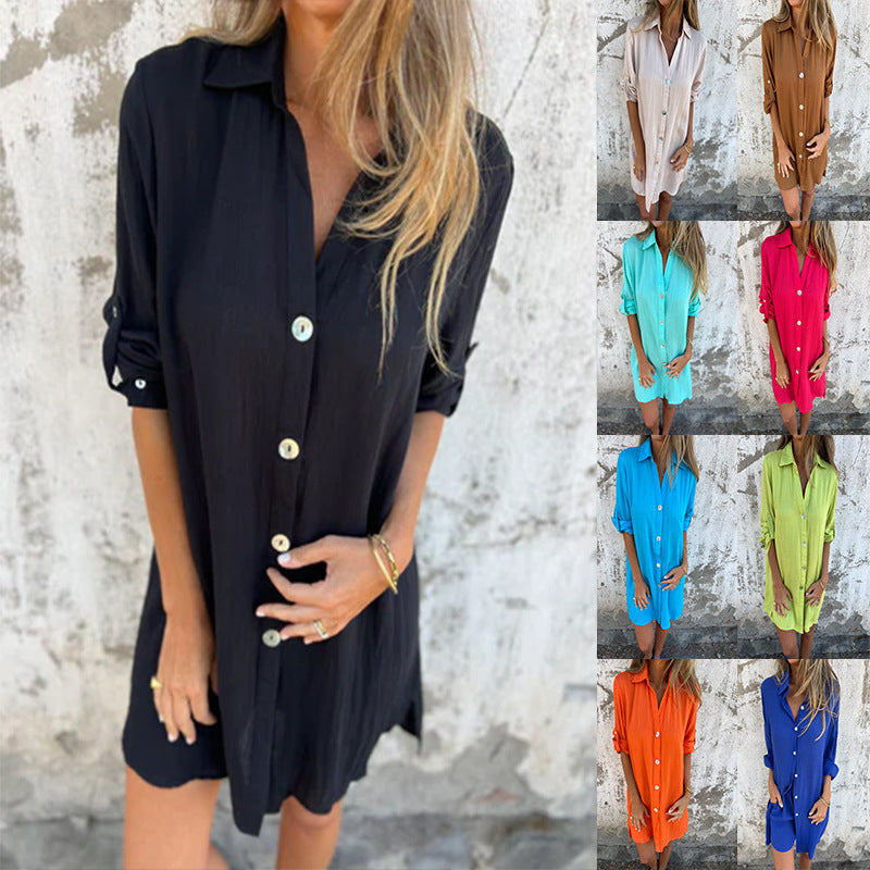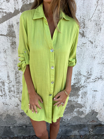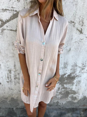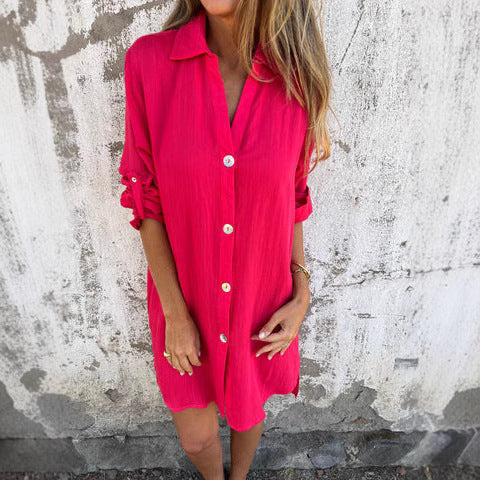 Opdag vores dames afslappede skjorte-kjole lavet af let materiale, der ikke kun er trendy, men også yderst komfortabel. Denne kjole er perfekt til mange anledninger, fra shoppingture til afslappede middage.