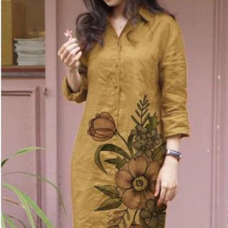 Opdag vores trendy kvindes skjortekjole, der er dekoreret med et unikt blomsterdesign. Denne kjole er perfekt til hverdagen samt specielle anledninger. Fremstillet af højkvalitets, åndbart materiale giver den en behagelig bæreoplevelse.