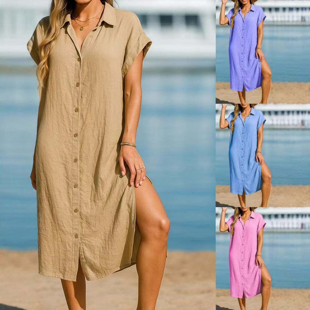 Oplev vores stilfulde og komfortable casual skjortekjole, perfekt til varme sommerdage. Dette kjole kombinerer elegance med funktionalitet og er din ideelle følgesvend til fritidsaktiviteter og afslappede udflugter.