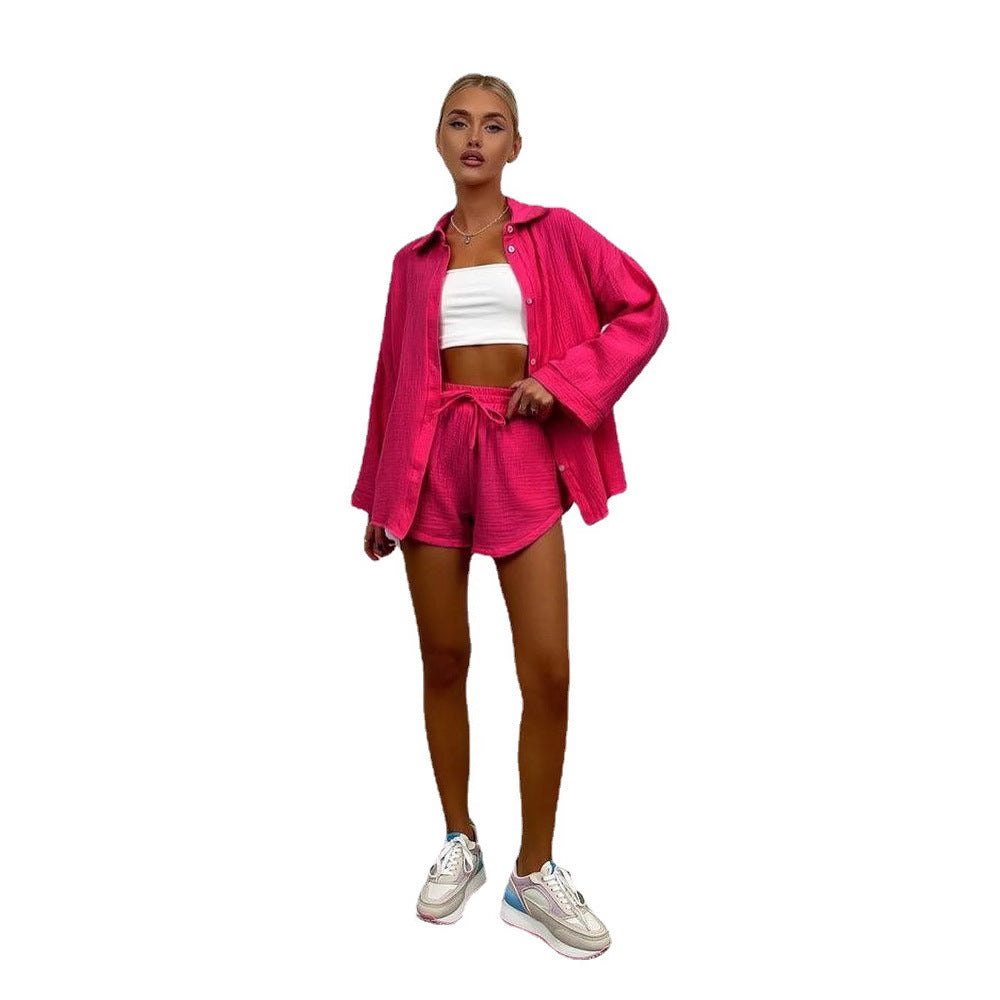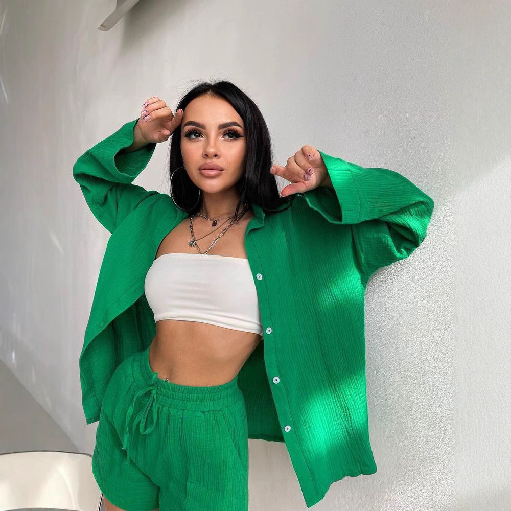 Opdag vores afslappede sommeroutfit, der tilbyder den perfekte blanding af stil og komfort. Kombinationen af en åben skjorte og shorts lavet af let, åndbart materiale er ideel til varme dage.