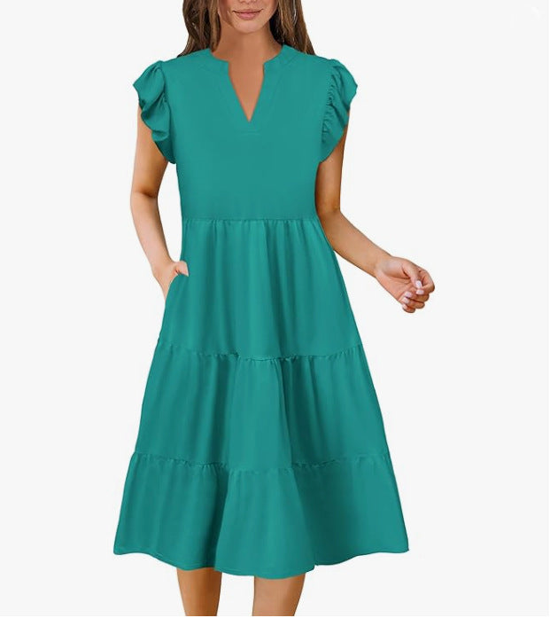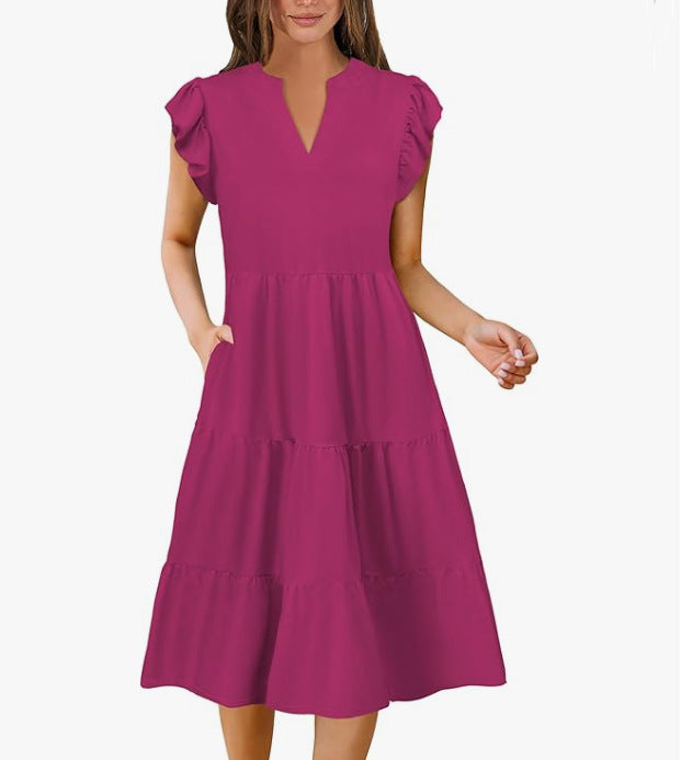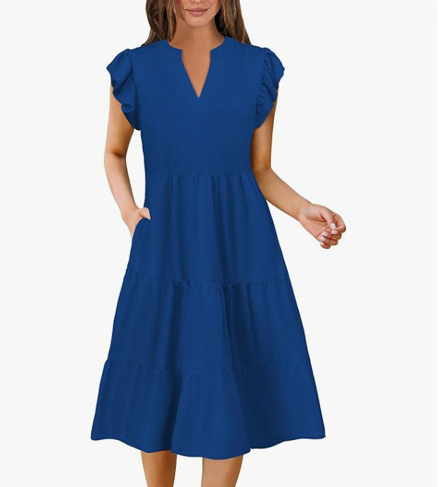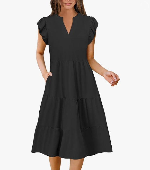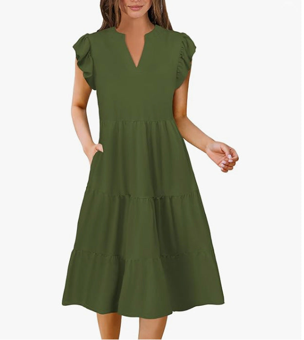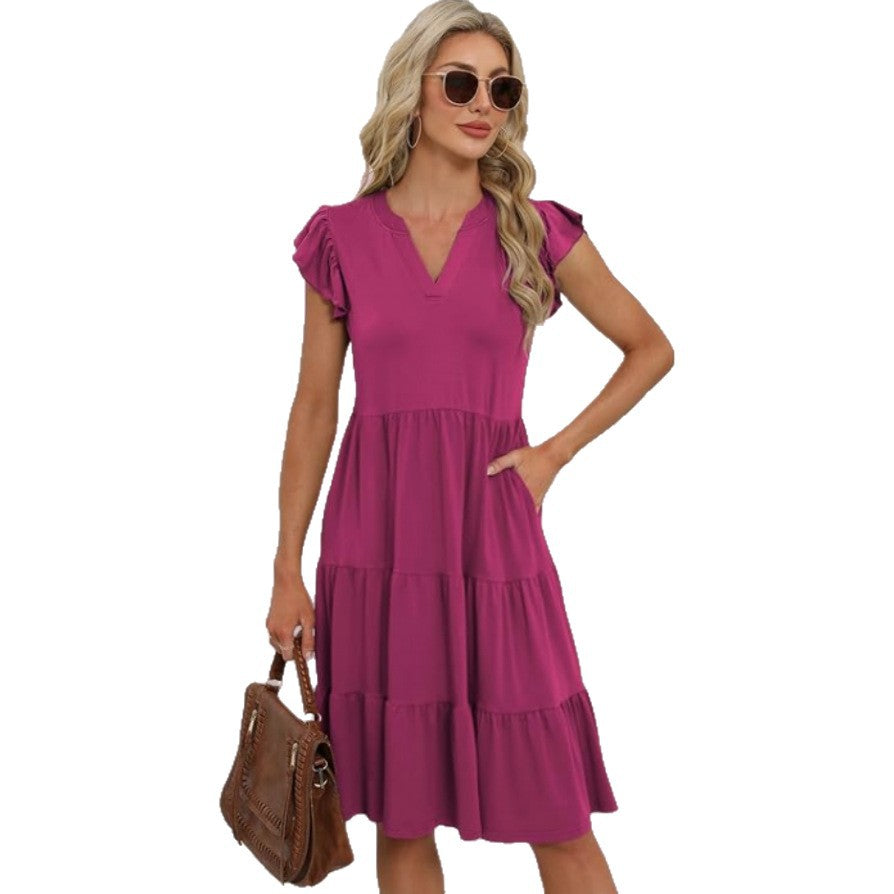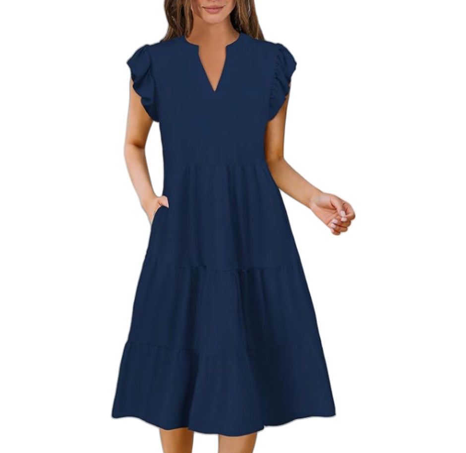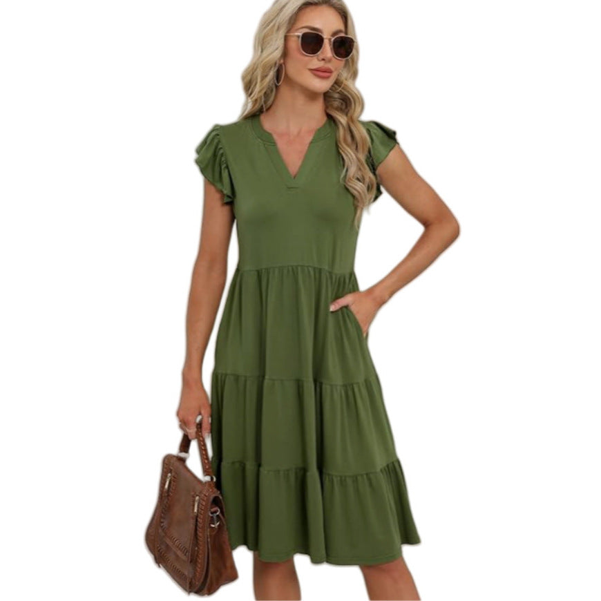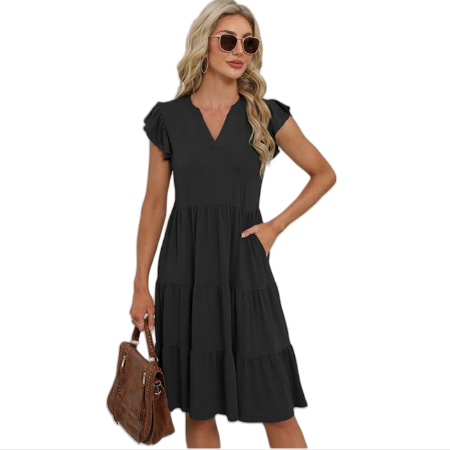 Opdag den perfekte kjole til kvinder til sommeren med denne afslappede og stilfulde model fra Stilla. Med en charmerende V-udskæring og elegante flæseærmer er denne kjole både behagelig og moderigtig.