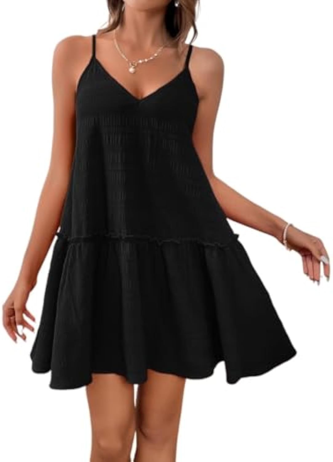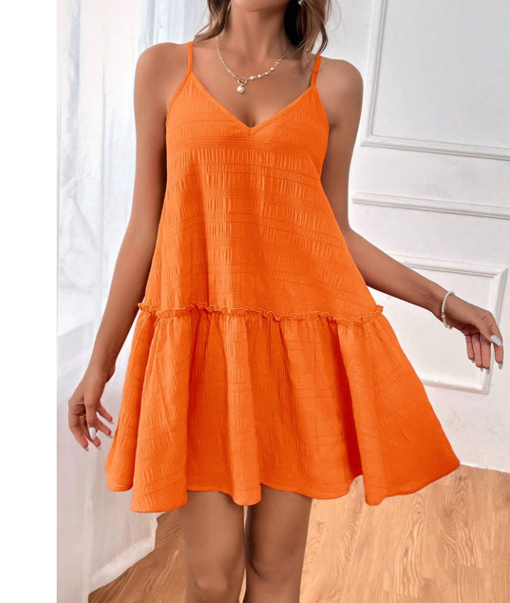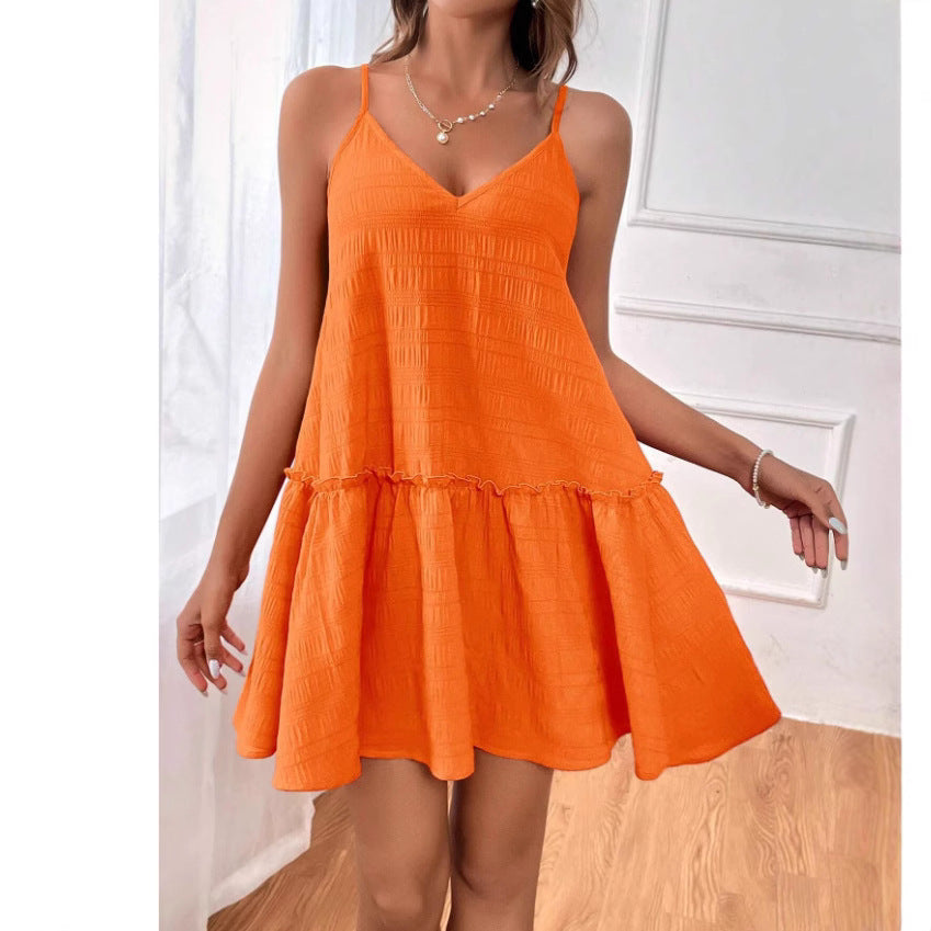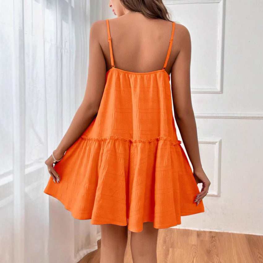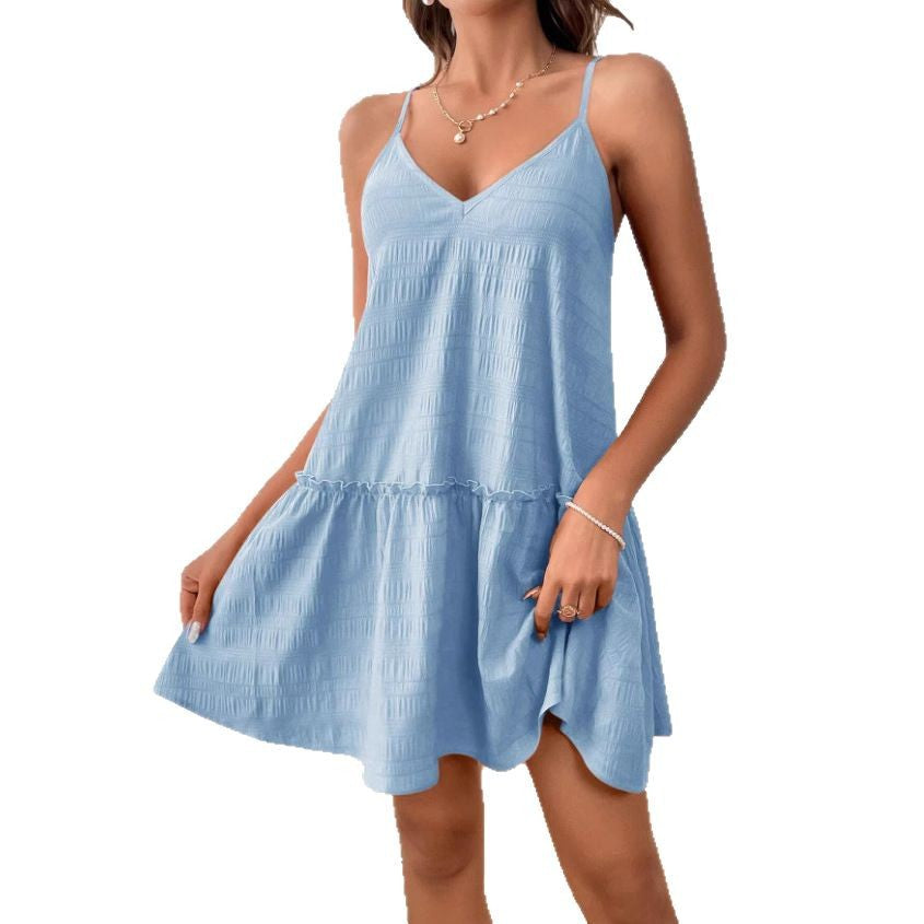 Denne afslappede damesommerkjole med voluminøs skørt er den perfekte følgesvend på varme dage. Den kombinerer stil med komfort og sikrer, at du både ser elegant og afslappet ud.