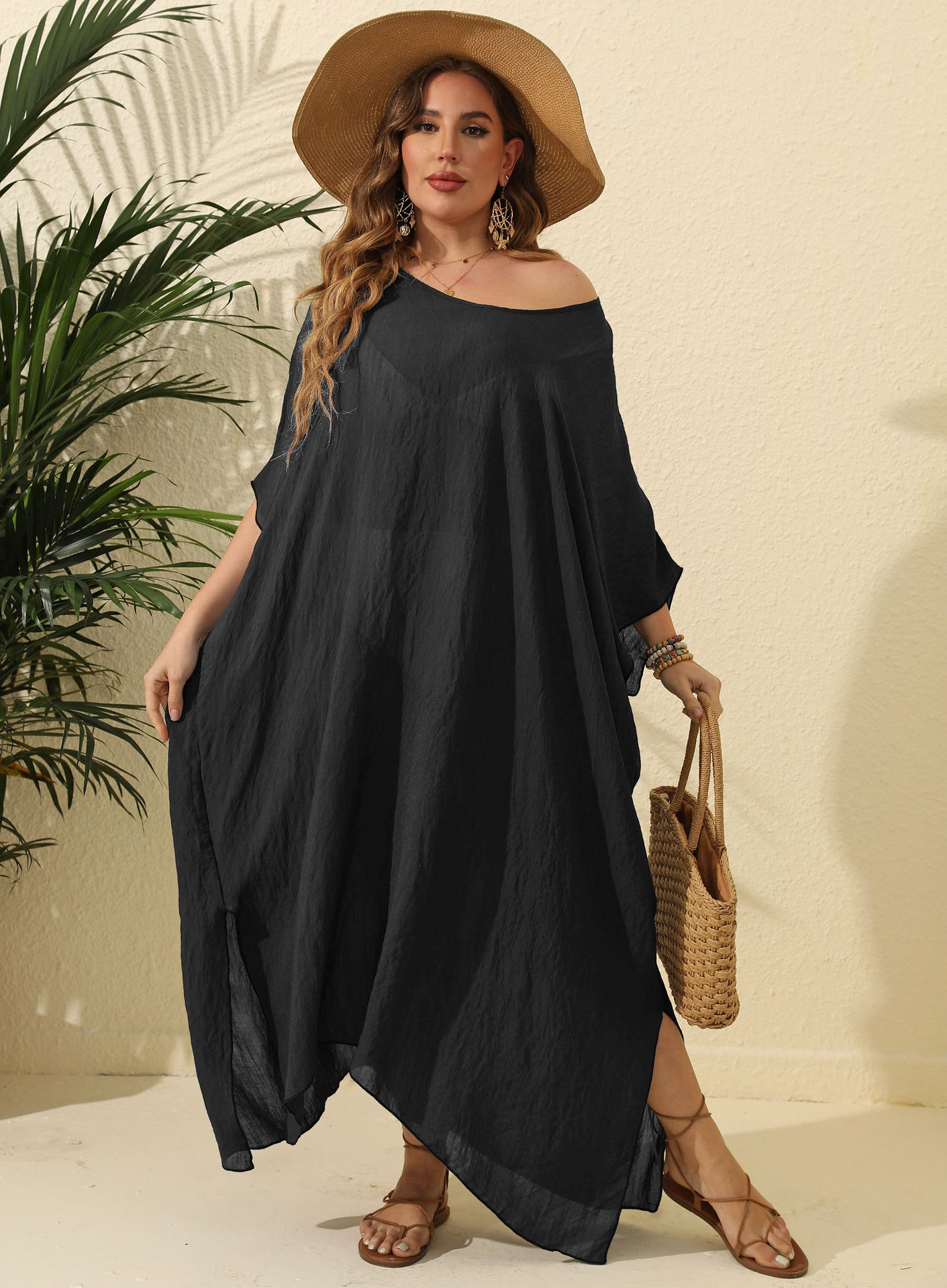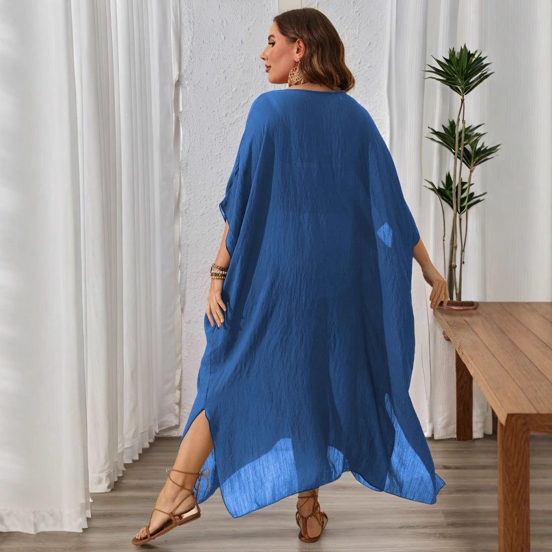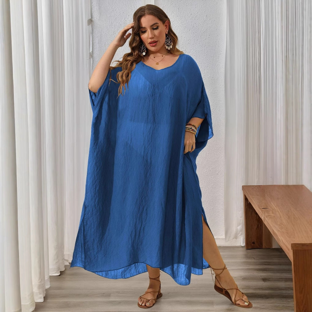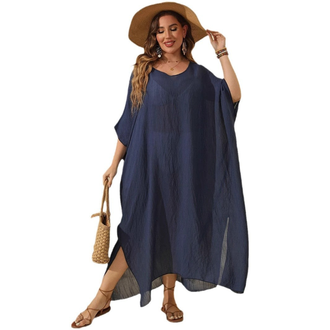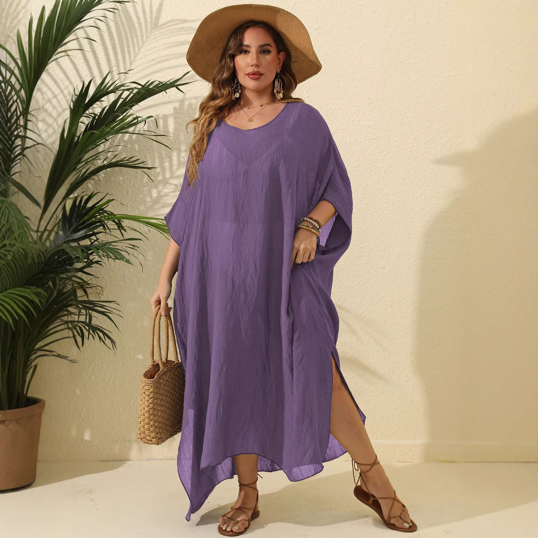 Vores dames afslappede strandkjole forener stil og komfort. Med sin asymmetrisk kant og praktiske sidespalter giver denne kjole en ubesværet elegance, der er ideel til varme dage på stranden eller på ferie.