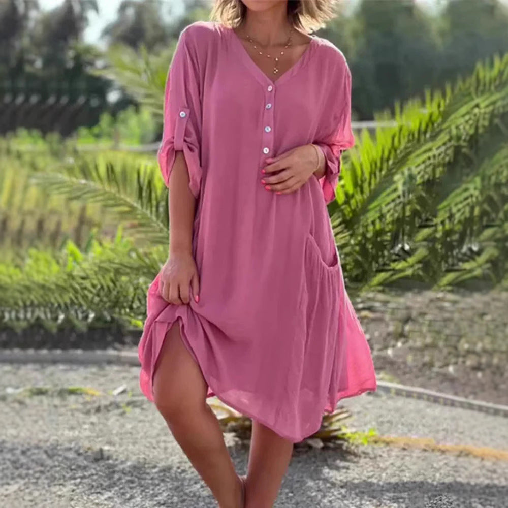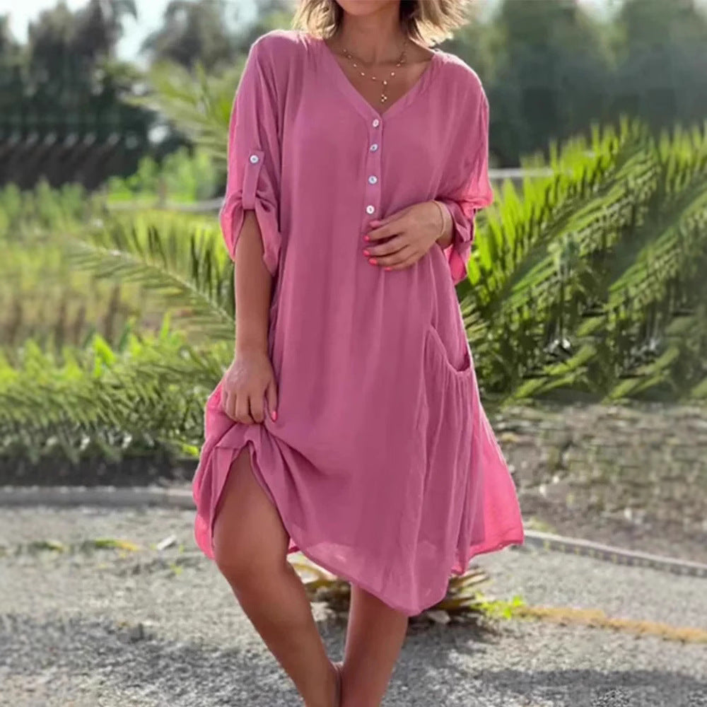 Med denne kjole er du altid stilfuldt og komfortabelt klædt – et must-have til din sommergarderobe!