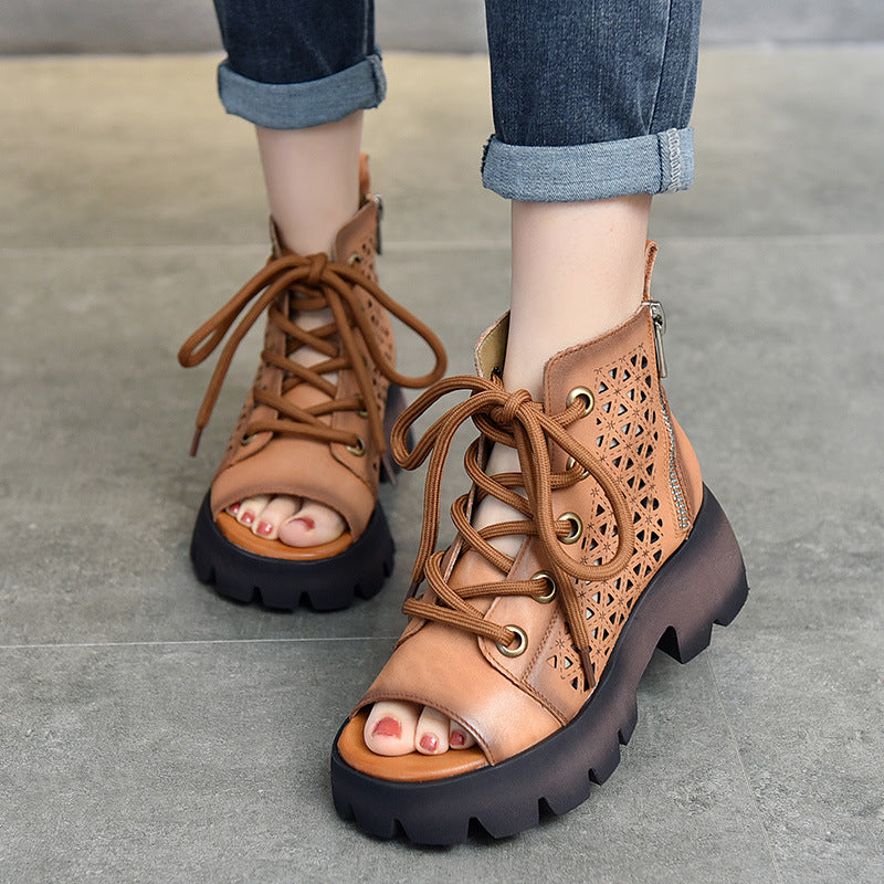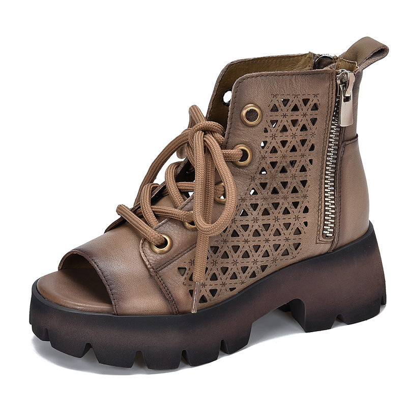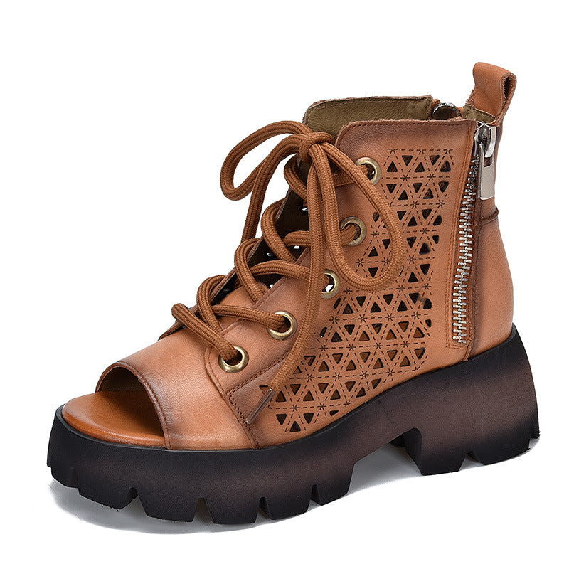 Opdag Stilla’ damer åbne snørebånd støvler med dekorative udskæringer, der perfekt forener stil og komfort. Disse unikke støvler er lavet af høj kvalitet læder og har et iøjnefaldende, perforeret design, der ikke kun er moderigtigt, men også åndbart.