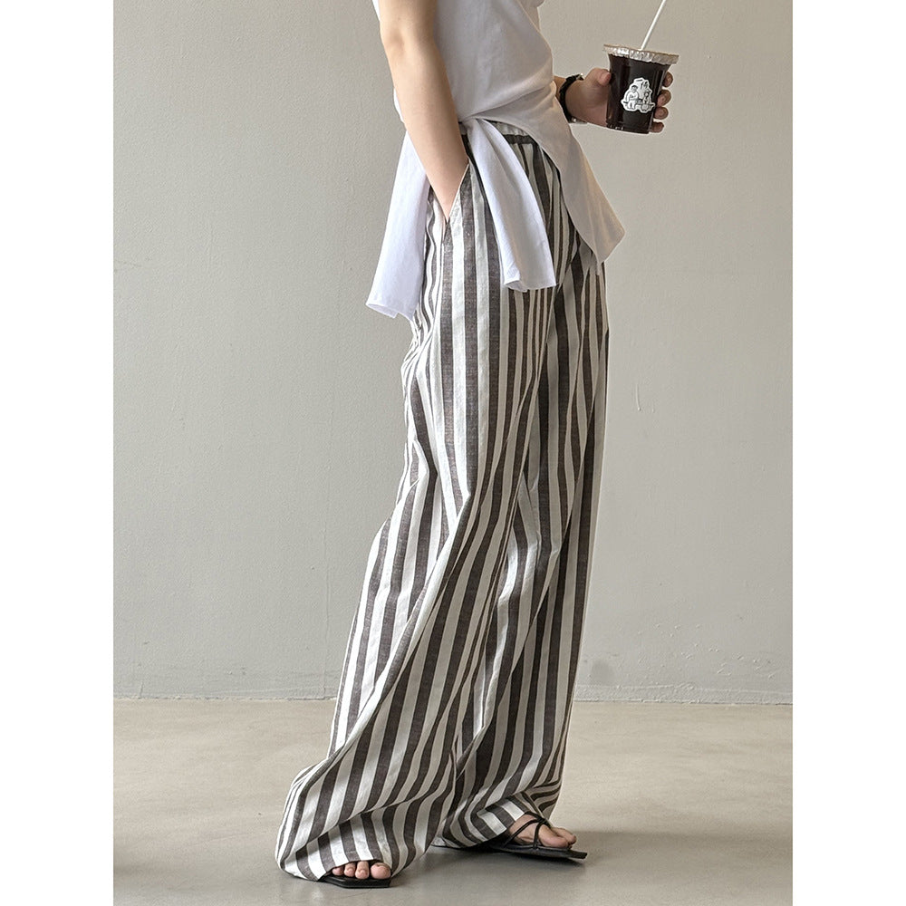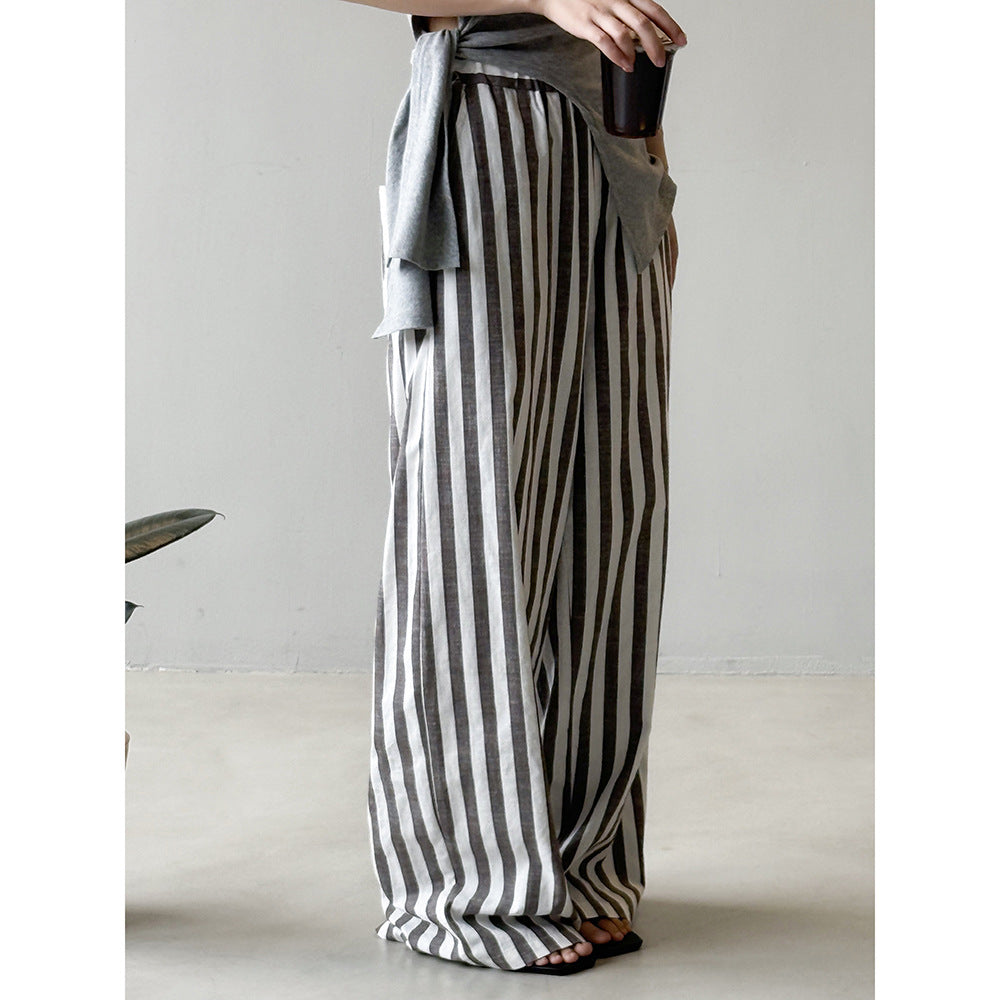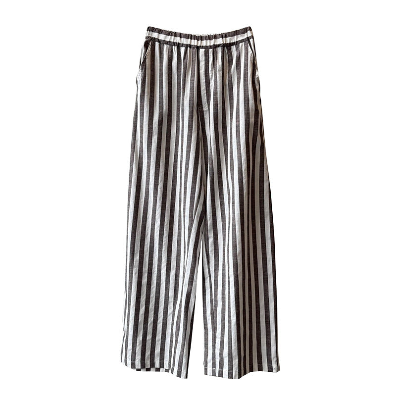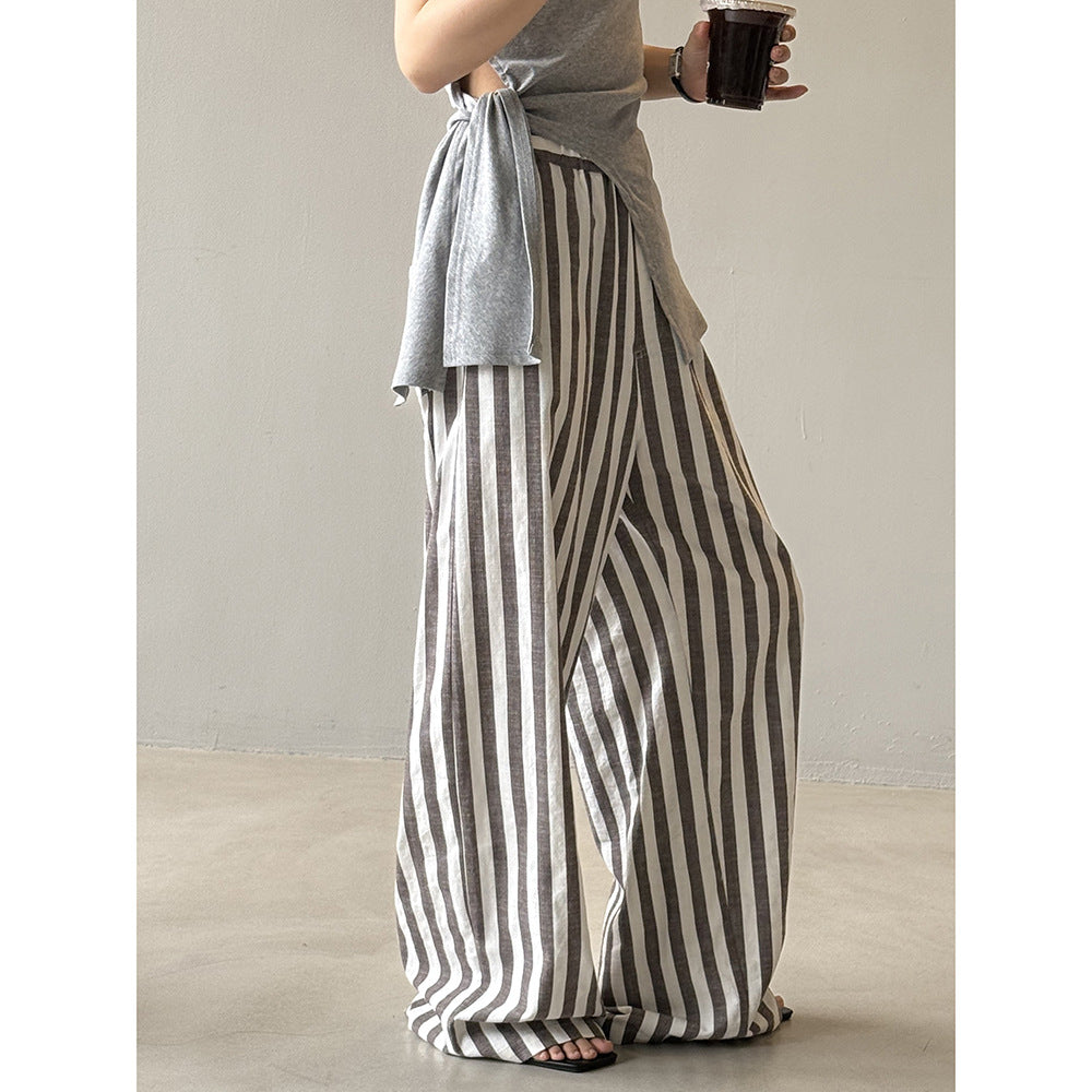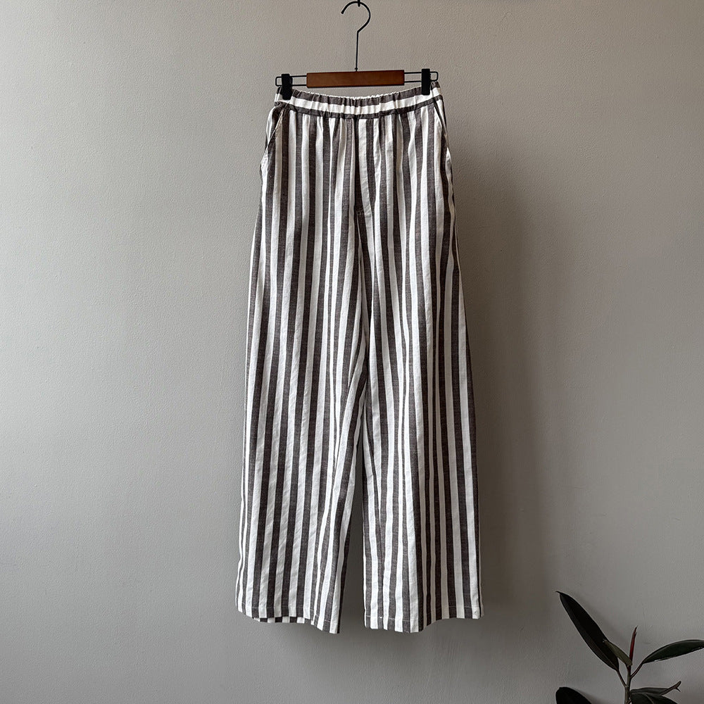 Vores dames afslappede linnedragt med brede striber fra Stilla forener komfort og stil på perfekt vis. Denne dragt er det ideelle beklædningsstykke til varme dage, da det åndbare linnedmateriale sikrer en behagelig kølighed.