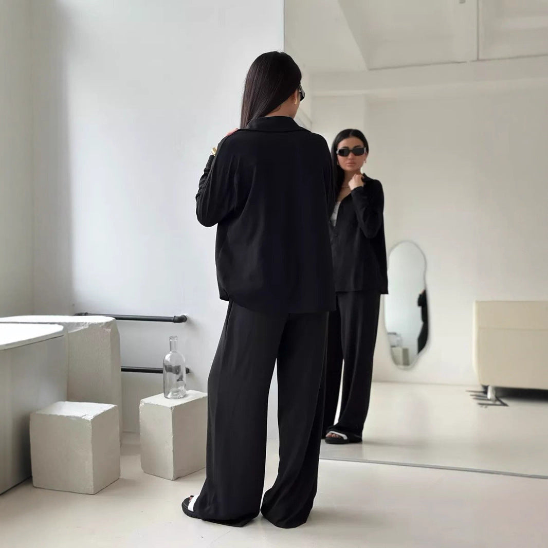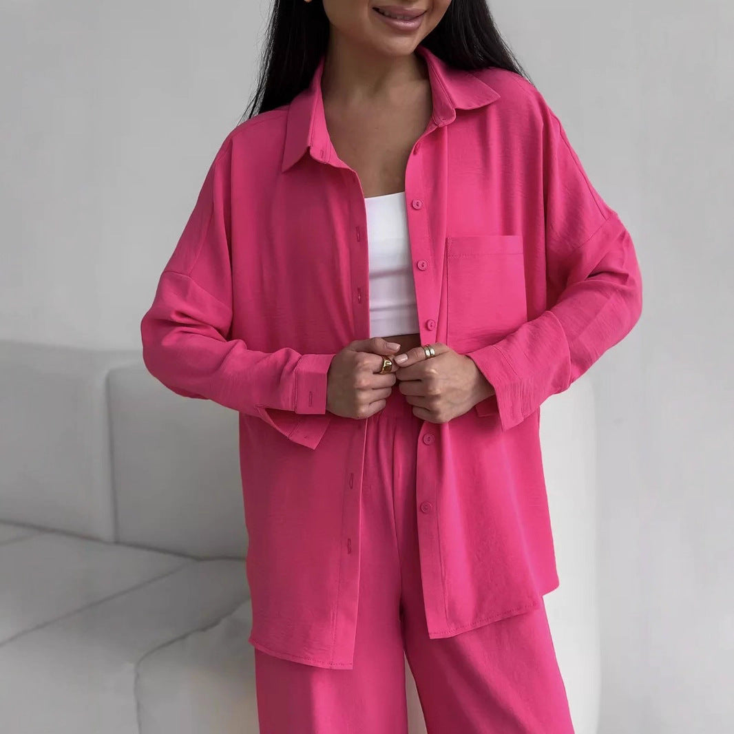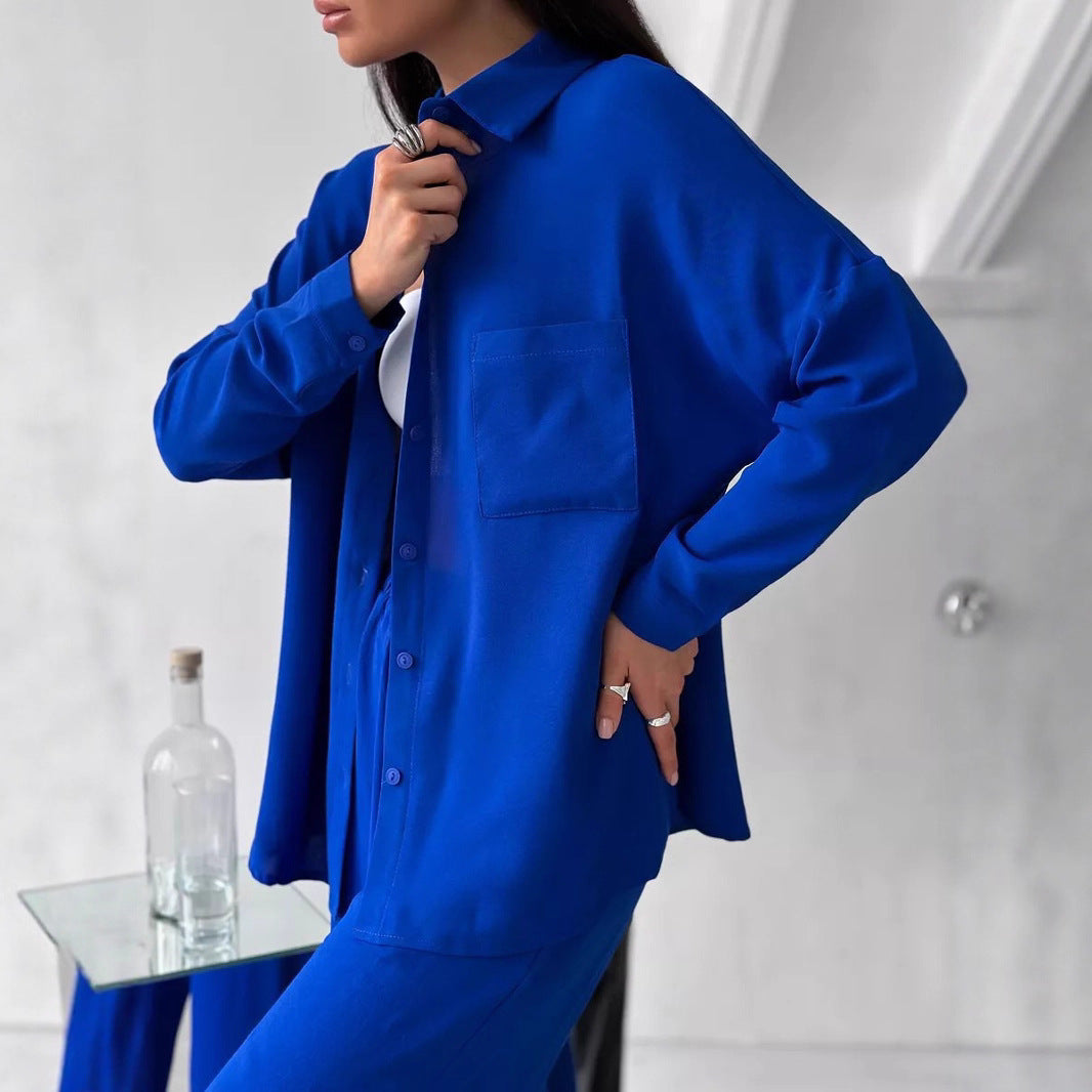 - Moderne design: Løs pasform med elegant krave og lukning med knapper for et tidsløst look.