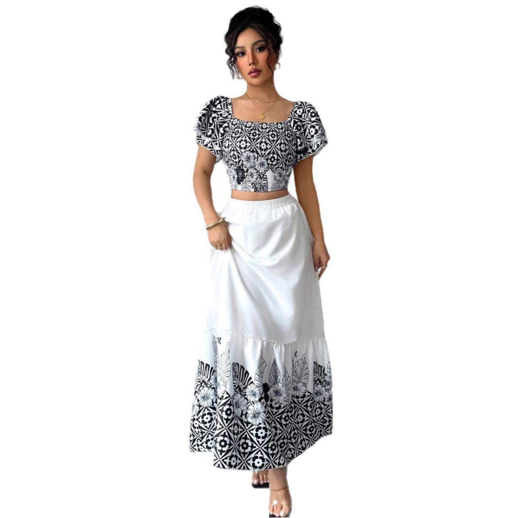 Oplev det perfekte sæt til enhver lejlighed med vores dames crop-top og maxi-nederdel sæt. Dette sæt forener trendy stil med et strejf af elegance og er ideelt til sommerarrangementer eller afslappede dage i byen.