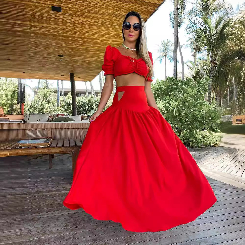 Opdag vores stilfulde dame Crop-Top og Maxiskirt sæt, der tilbyder både elegance og komfort. Dette sæt er perfekt til varme dage og særlige lejligheder.