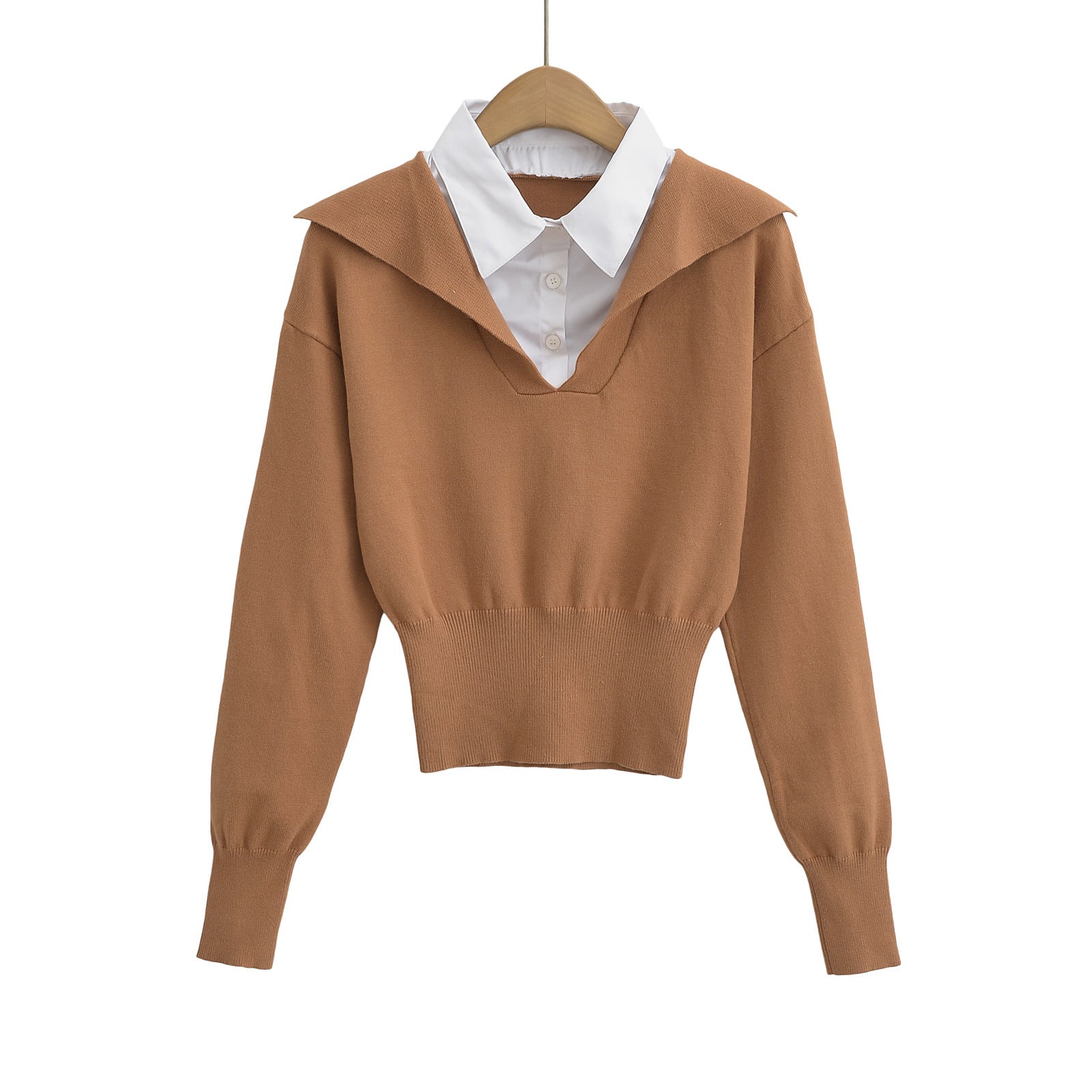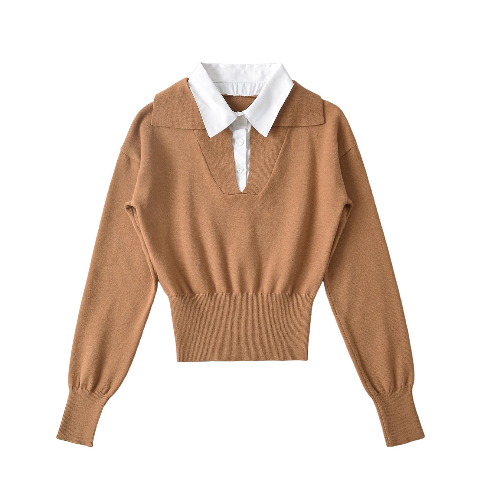 Denne trendy dames cropped sweater kombinerer komfort med stilfuldt design. Den integrerede skjortekrave giver det klassiske look et moderne touch og muliggør alsidige kombinationer til enhver lejlighed.