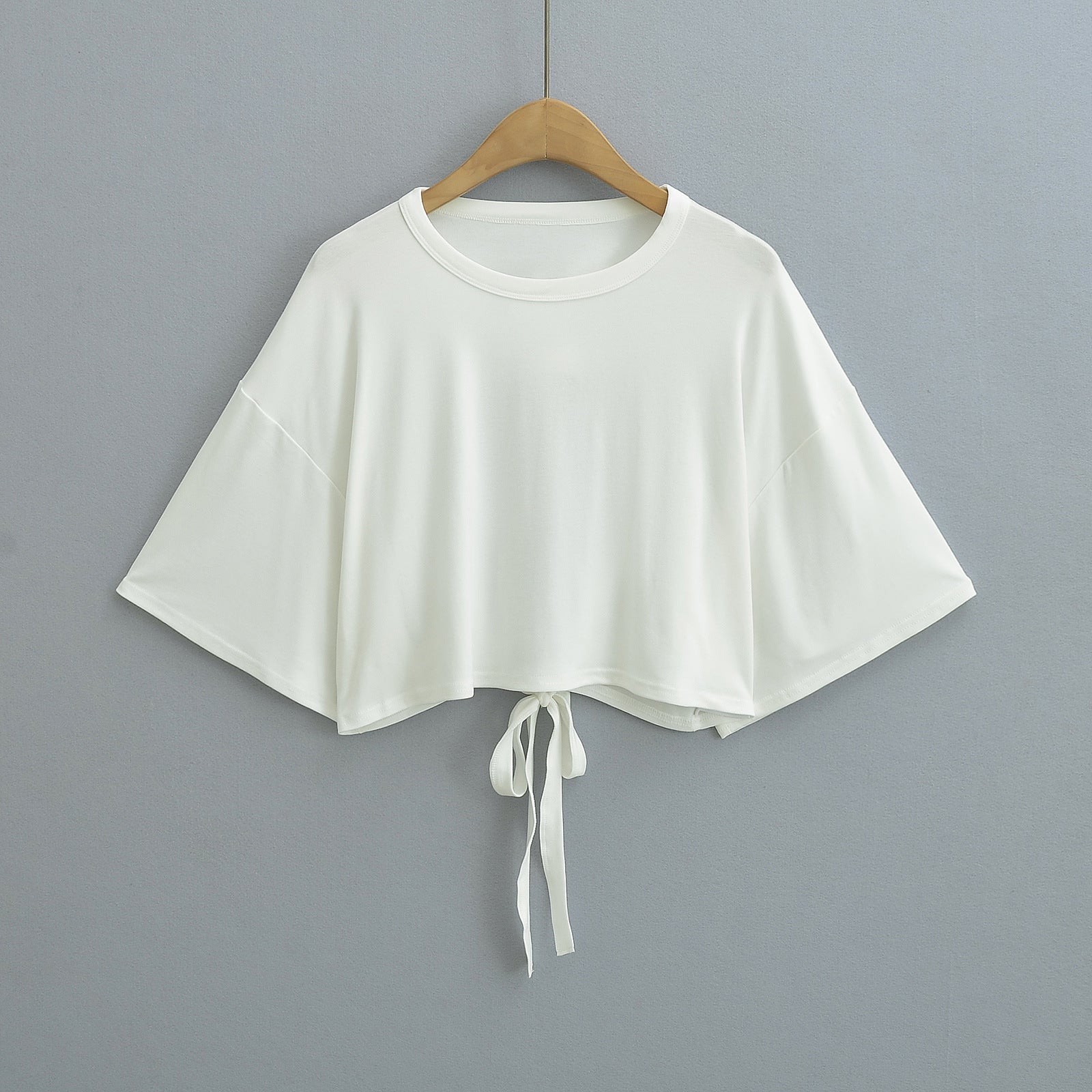 Opdag vores dames cropped T-shirt med afslappet snit og bundet detalje, der er perfekt til afslappede sommerlooks. Fremstillet af høj kvalitet, åndbart materiale, tilbyder dette overdel både komfort og stil.