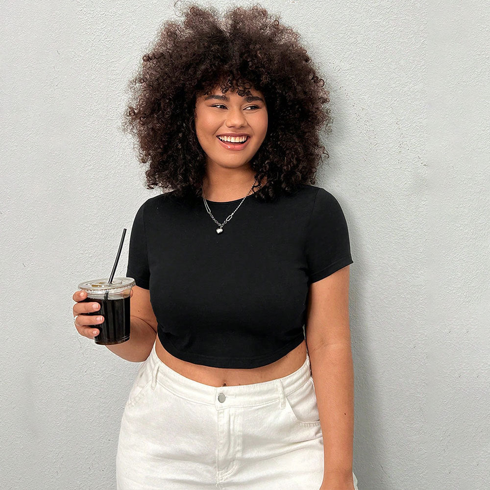 Opdag vores cropped T-shirt til damer, som imponerer med sin høje taljesnit og behagelige design. Fremstillet af kvalitetsbomuld tilbyder den ikke kun et afslappet look, men også optimal komfort. De korte ærmer giver god bevægelsesfrihed og gør den ideel til hverdag eller særlige lejligheder.
