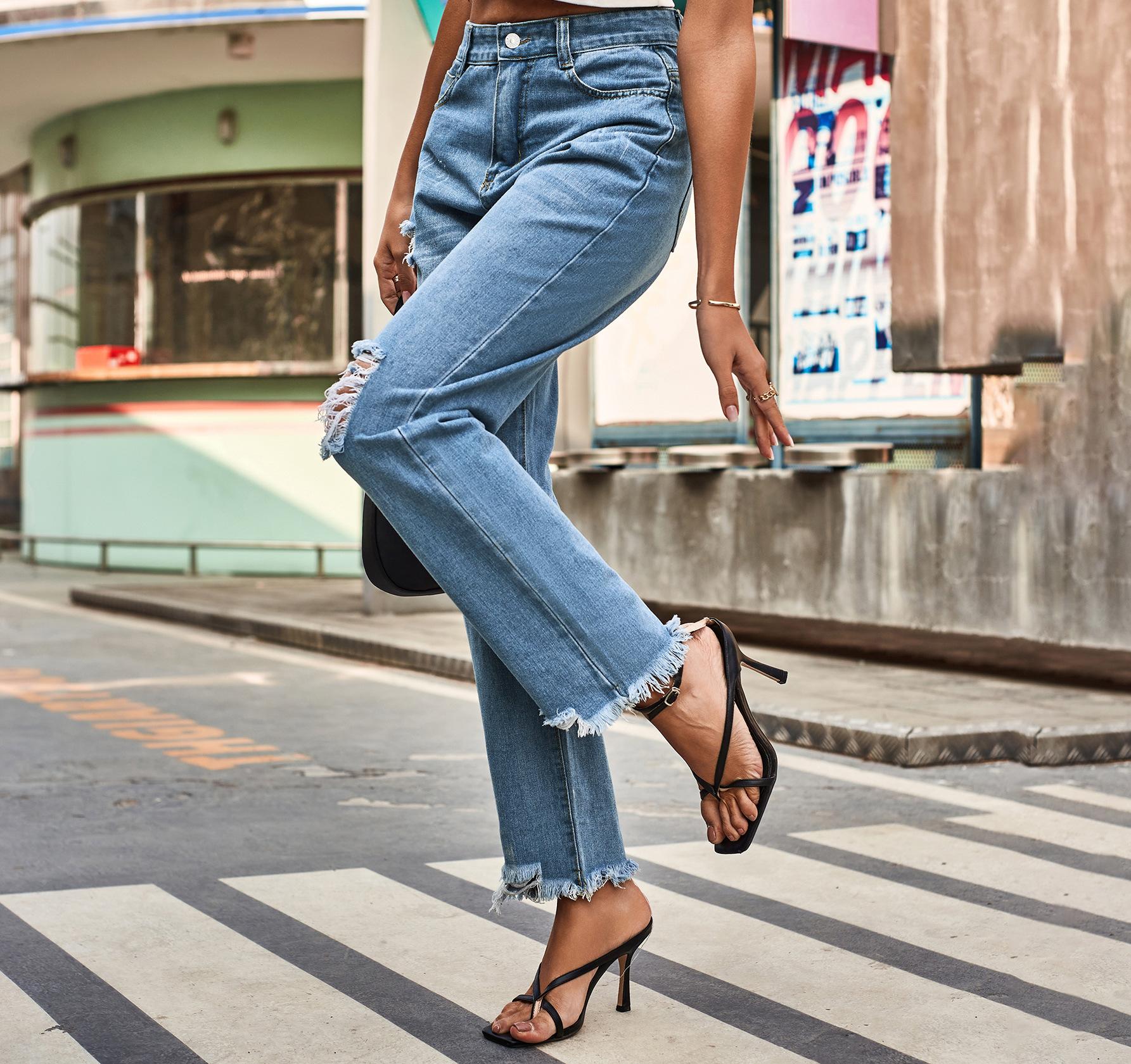 Denne destroyed jeans er et must-have for modebevidste damer, der foretrækker et afslappet og samtidig stilfuldt look. Få fat i dette stilfulde tøjstykke og sæt nye trends i din garderobe!