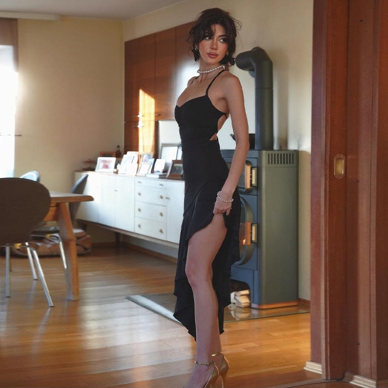 Opdag Stilla' elegante aftenkjole til damer med asymmetrisk kant og sexet sideslids, den perfekte kjole til særlige anledninger. Denne imponerende kjole forener stil og komfort.