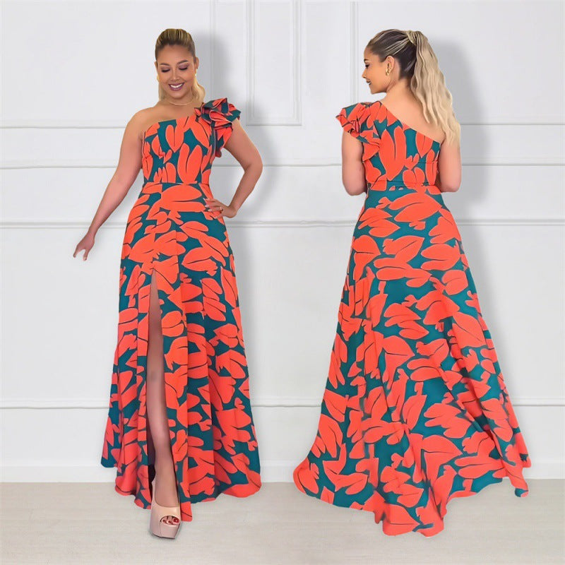 Opdag Stilla' elegante aftenkjole til kvinder med en skulderrem og høj slids, ideel til særlige lejligheder og festlige arrangementer. Denne kjole kombinerer stil og komfort med et moderne design og iørefaldende mønster.