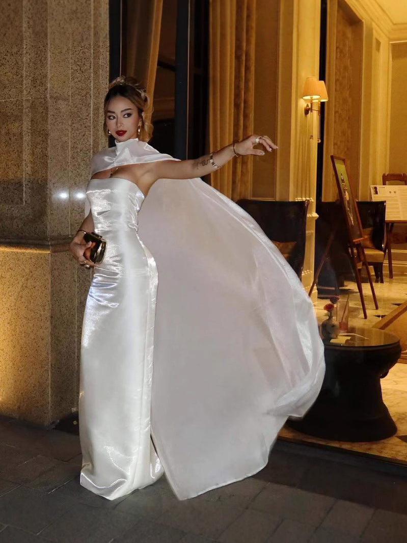 Opdag den eksklusive dames aftenkjole fra Stilla, der imponerer med et elegant, off-shoulder design. Denne kjole er det perfekte valg til bryllupper, gallaer eller andre festlige lejligheder og fremhæver din feminine silhuet på en stilfuld måde.