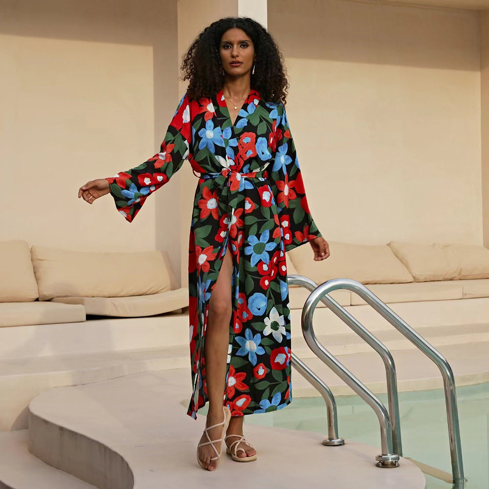 Udforsk den fantastiske dames elegante blomster-kaftan med sideslids fra Stilla - ideel til stilbevidste kvinder, der værdsætter komfort og elegance.
