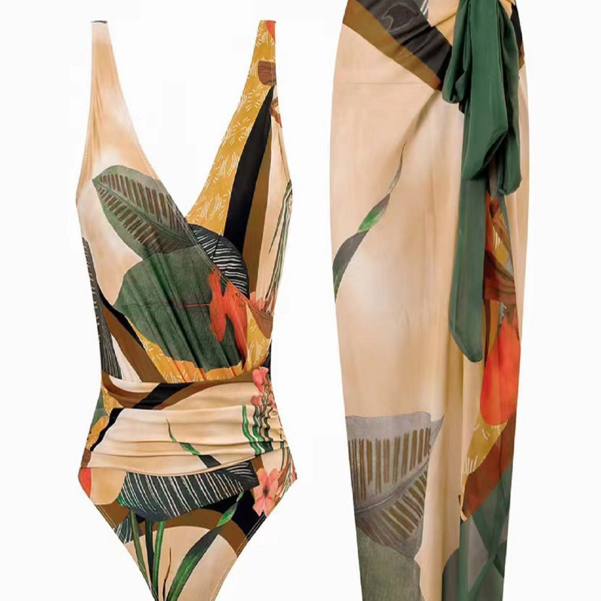 Her er Femme Elegant Floral Print Swim Set med matchende indpakningsskørt fra Stilla, designet til den moderne dame, der værdsætter både stil og komfort, når hun svømmer eller er ved stranden. Dette imponerende badetøjssæt forener elegance og praktiske aspekter med en kunstnerisk designet heldragt og et moderigtigt indpakningsskørt.
