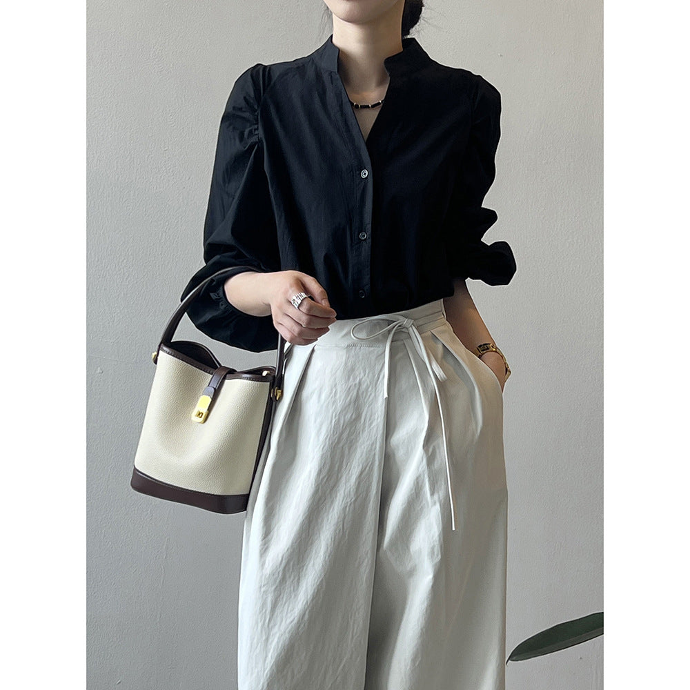Oplev Stilla' elegante dameskjorte med pufærmer og ståkrave, der kombinerer komfort og stil. Denne skjorte er fremstillet af højkvalitets, åndbart materiale og er ideel til enhver lejlighed.