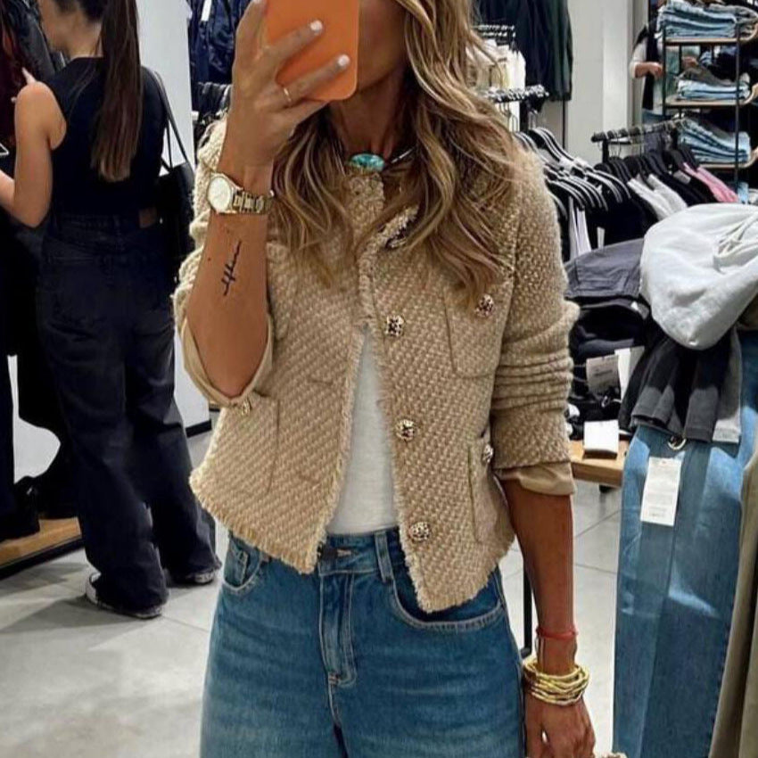 Dame elegant Bouclé-jakke fra Stilla kombinerer stilfuldt design med høj bærekomfort. Denne jakke, lavet af kvalitets Bouclé-stof, giver ethvert outfit et tidløst chic.
