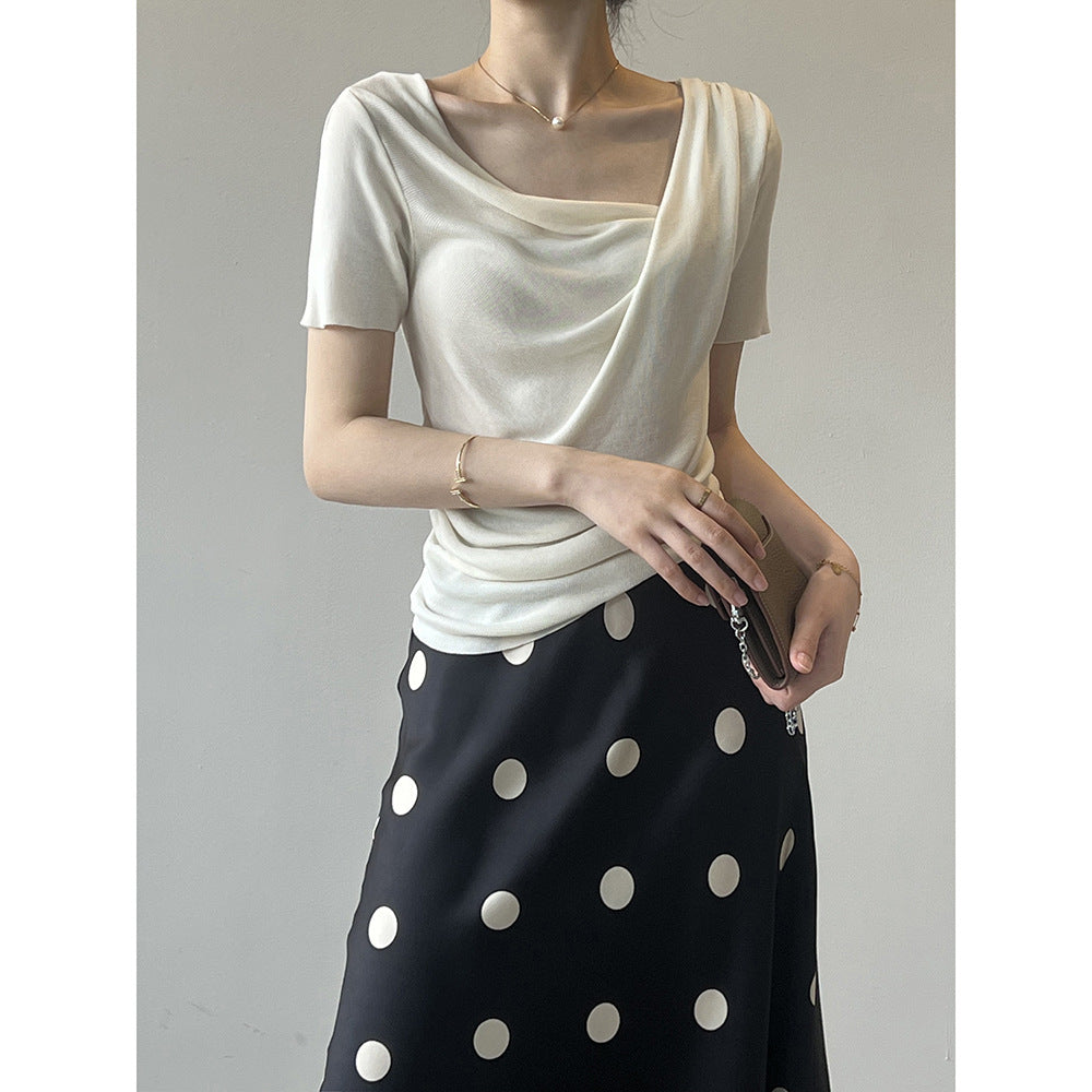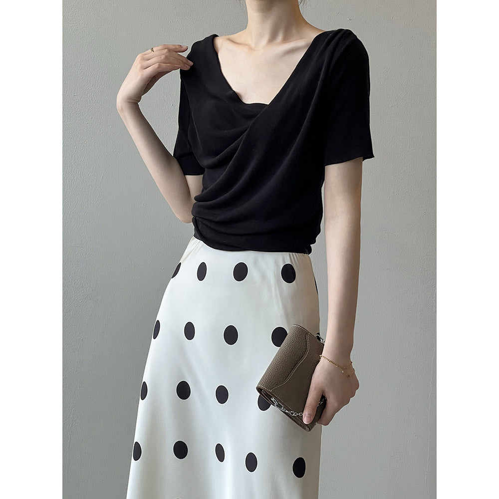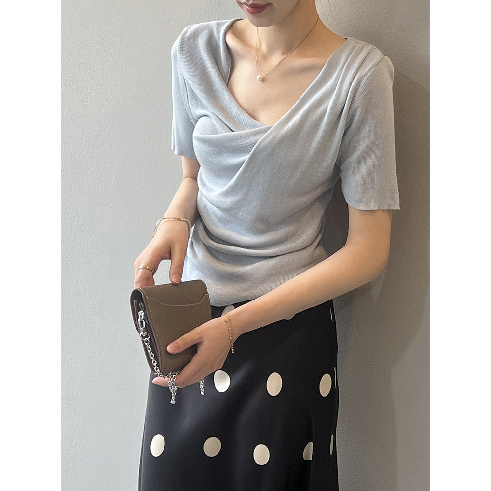 Opdag vores dames elegante draperet T-shirt med dyb V-udskæring og korte ærmer fra Stilla, der tilføjer et strejf af elegance til ethvert outfit. Fremstillet af et kvalitetsmateriale, der er blødt, tilbyder denne T-shirt ikke kun en behagelig bærekomfort, men sikrer også et feminint look.