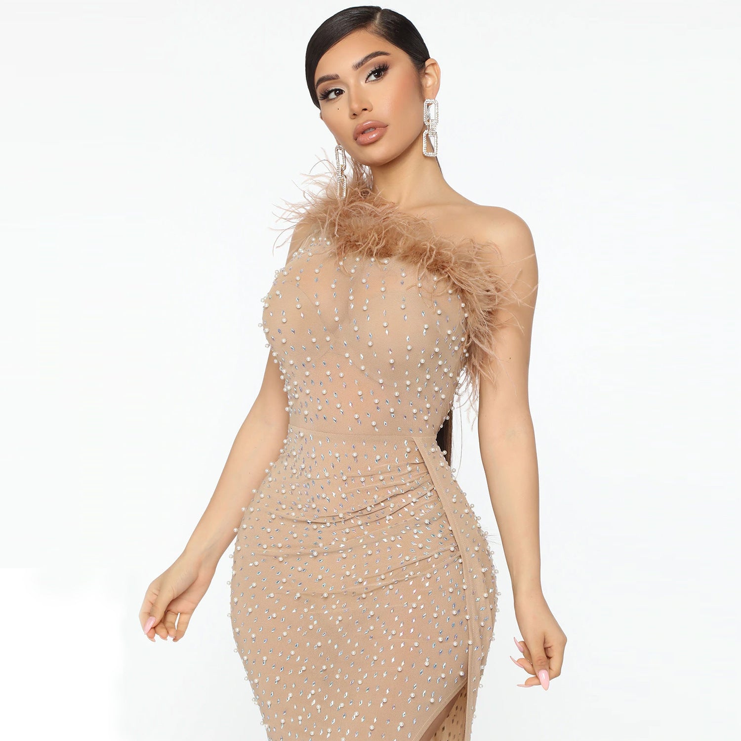 Frigør din indre diva med denne fantastiske elegante én-skulder midi-kjole med pailettes og fjerdetaljer fra Stilla. Designet til den moderne kvinde, forener denne kjole straks glamour med sofistikering og er perfekt til enhver særlig lejlighed.