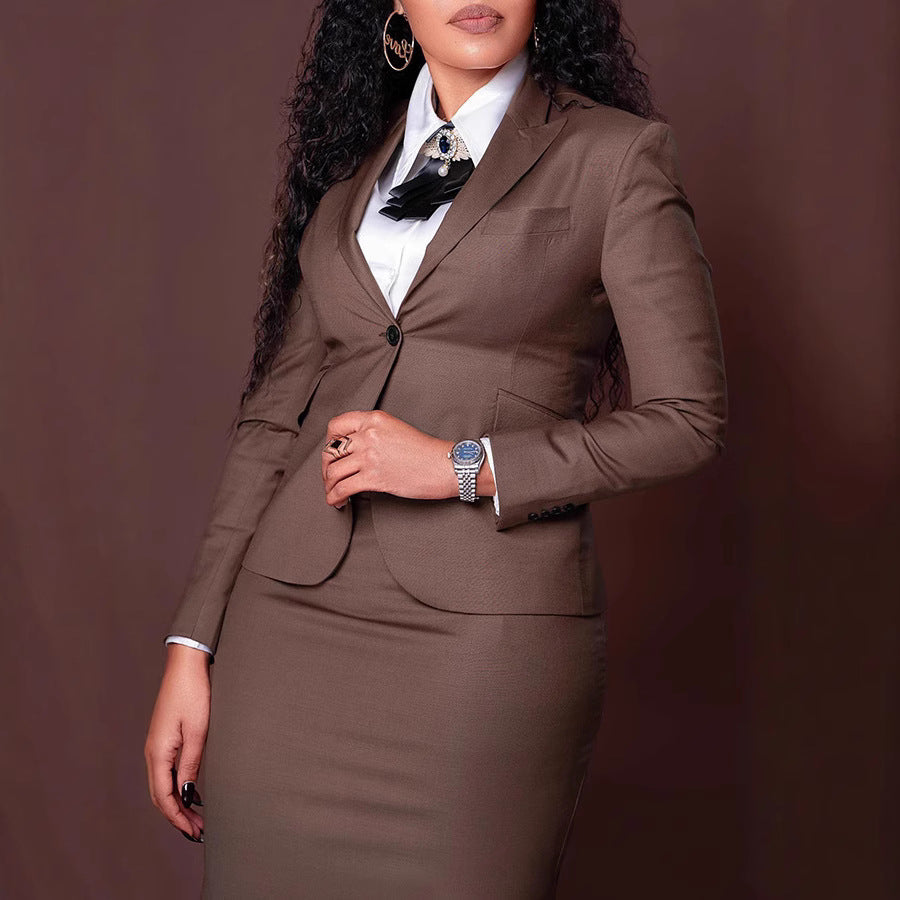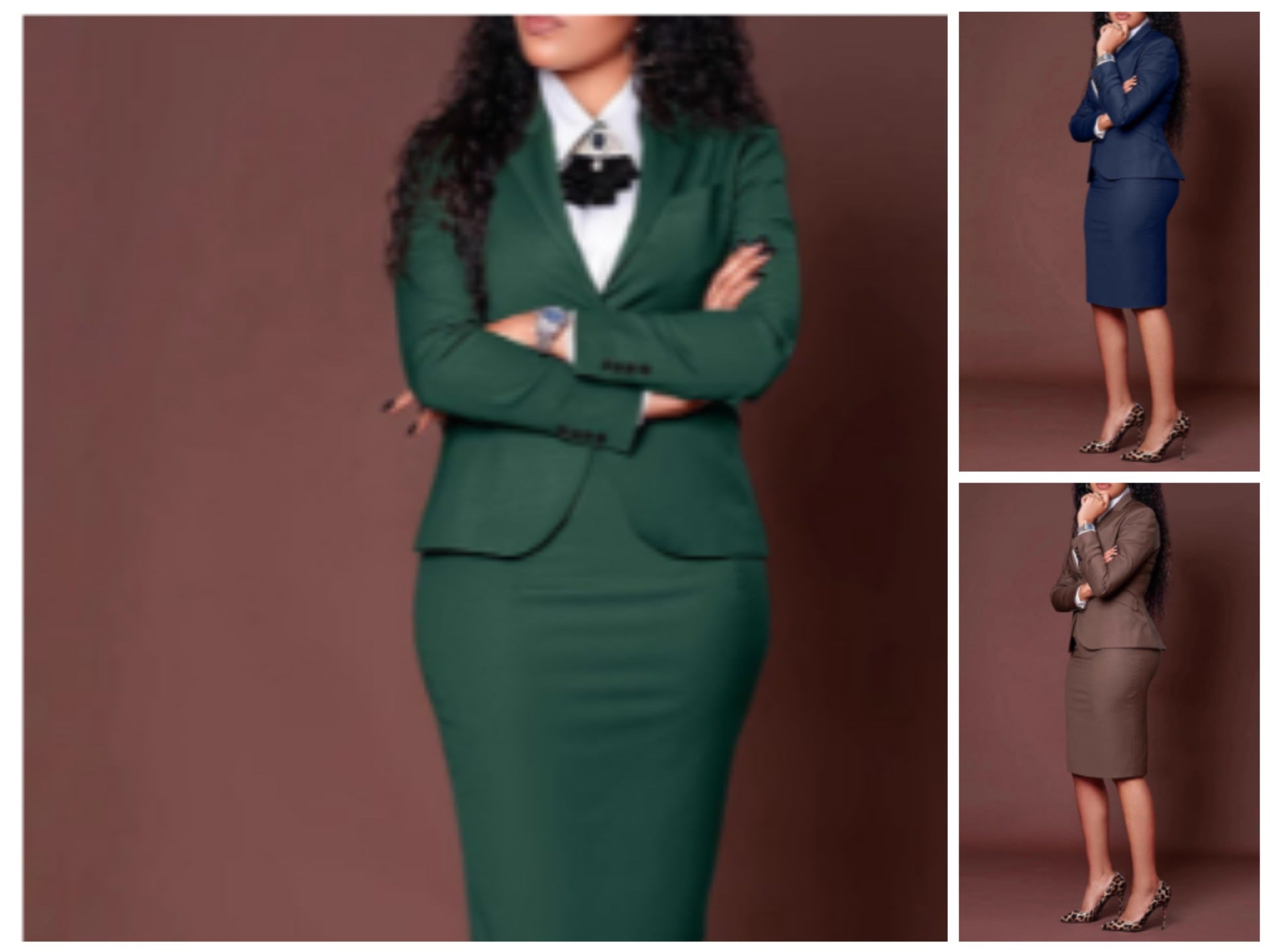 Opdag vores elegante business-sæt, der består af en figursyet blazer og en tætsiddende nederdel. Perfekt til den moderne kvinde, der ønsker at imponere både på kontoret og ved forretningsanledninger.