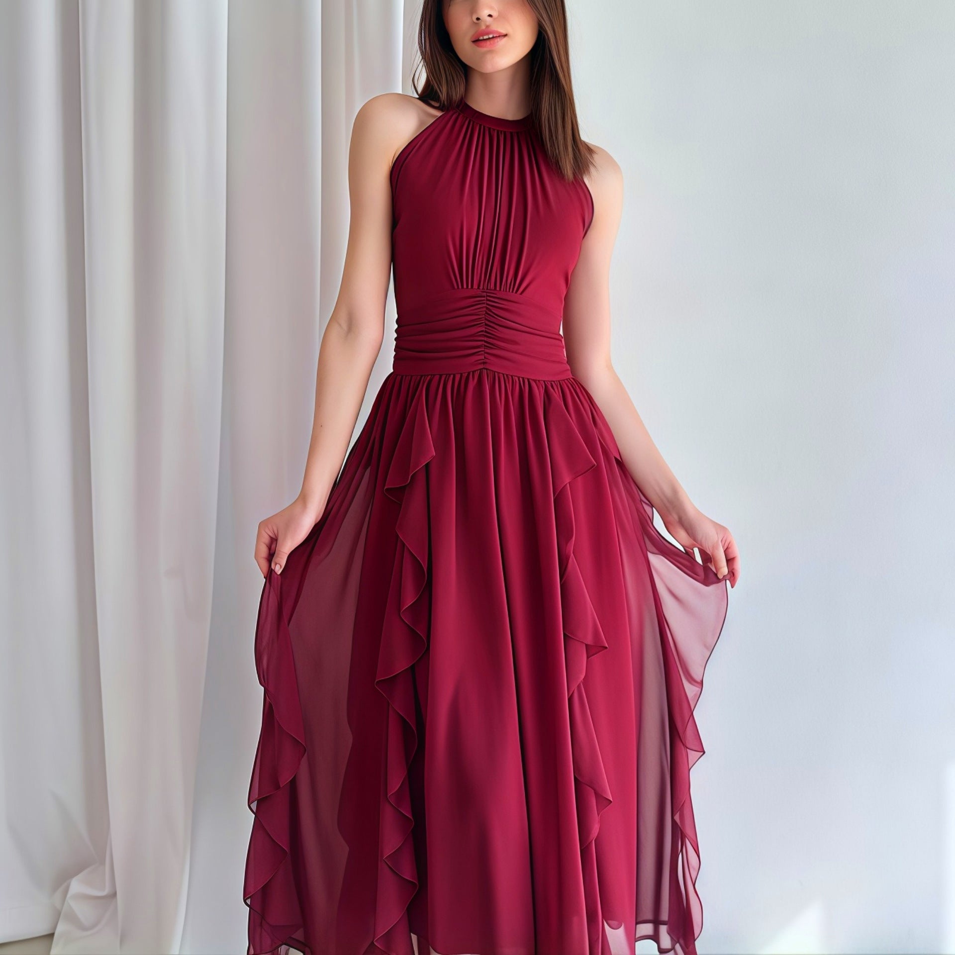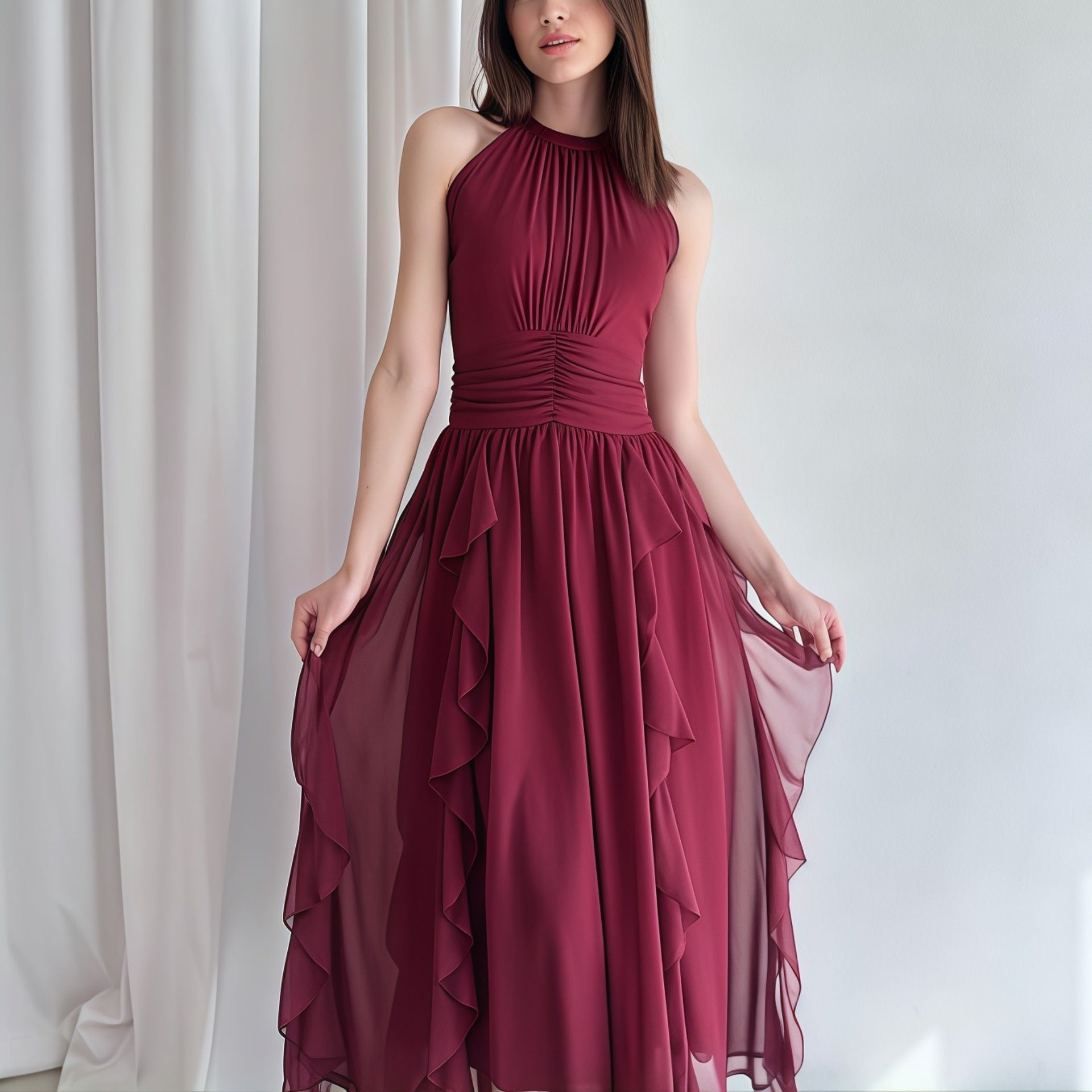 Vælg denne elegante halværmet kjole og føl dig smuk og selvsikker ved enhver lejlighed.